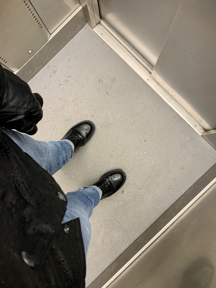 První letošní sníh, tak jsem vytáhl Dr. Martens 1460 Mono.. Po roce na noze, takže solidně sedřené paty.