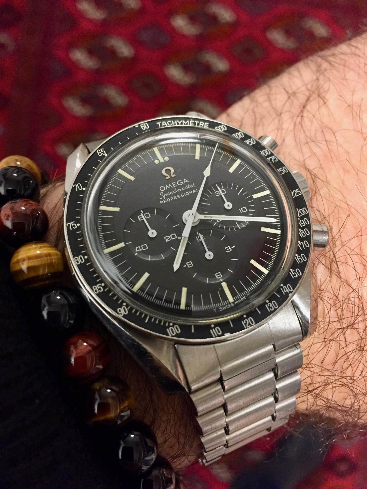 Pánové díky, mám radost že se vám líbí. Je to 145.022 transitional model, tzn. pouzdro a cifr jako 145.012, ale s kalibrem 861. Více info zde: http://speedmaster101.com/145-022-transitional/ Tah je 1171, a myslím že je původní, Omega ho začala používat právě v r. '68 se změnou kalibrou . Mě osobně by se nejvíc líbil 1450, ale jejich cena je nesmyslná :-)
