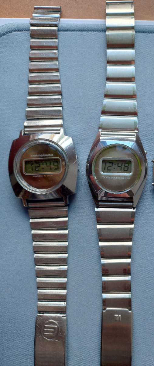 Ahoj, dovolím si zde nabídnout starý digitálky, které se ke mně v průběhu chrono vývoje nějak dostaly. Jelikož jsem nemocen a nudím se, vytáhnul jsem je ze šuplíku, dal nový baterky a všechny tak nějak jdou No a jelikož digitálky nejsou můj šálek kávy, nabídnu je k prodeji: 1) ELEKTRONIKA B6-02 - nejdou nastavit minuty, jinak OK, signovaná spona + origo tah - cena 850,- + zaslání 2) TEXAS INSTRUMENT TiH3 - bez problémů, signovaná spona + origo tah - 950,- + zaslání 3) Kelton "Slim" - výška 4 mm! - poškozený tisk na sklíčku (ze vnitř), jinak vypadjí OK - 450,- + zaslání 4) National Semiconductor - displej v klidu OK, při nastavování mizí čísla, origo tah - 350,- + zaslání 5) Armitron Alarm - nehrajou (chrčí) jinak asi vše OK, origo tah - 350,- + zaslání Cena v případě odběru všeho: 2000,- včetně zaslání. Pokud by měl někdo jiný nápad/návrh, rozumné dohodě se nebráním. Vnější stav viz. foto, v případě vážného zájmu nafotím a pošlu další. Případné dotazy rád zodpovím (digitálkám ale skoro vůbec nerozumím). Všechny kusy jdou, ale neručím za ostatní funkce, manuály nemám, nastavování jsem nikde nehledal. Některé strojky podle mě vykazují stopy po opravách, já ale zvládám maximálně výměnu baterek, takže to úplně neumím posoudit. Díky Bertovi za prostor.