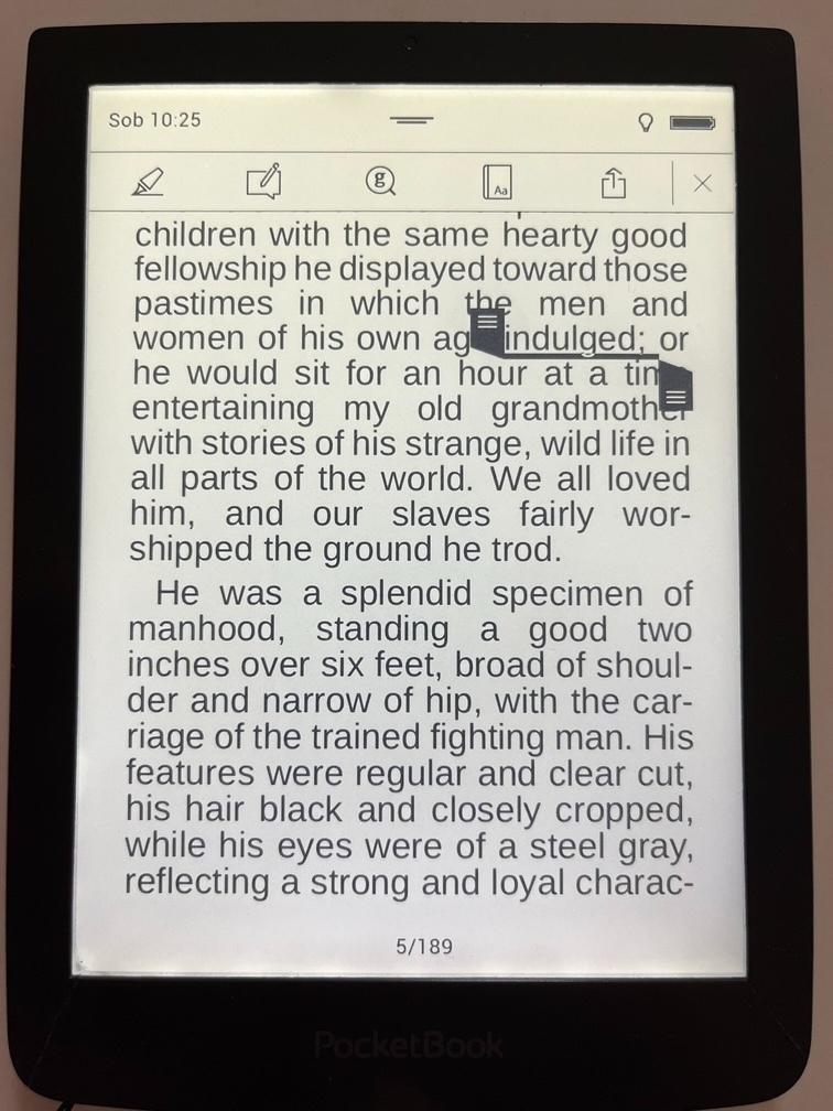Na starem pocketbooku pouzivam slovnik. Vyvola se podrzenim slova a volbou slovniku. Pak ten slovnik visi celou dobu na obrazovce a pokud budes dal prekladat, na slovniku je sipka nahoru/dolu, aby sel po obrazovce posunout a nebranil cteni.