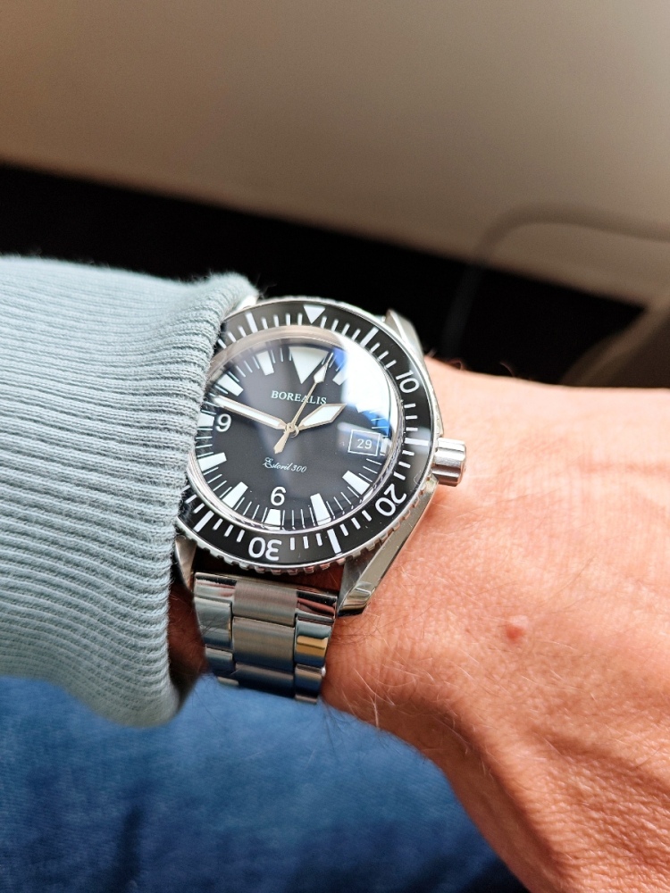 Ahoj, prodal bych notoricky známé Borealis. Mají 10 let, zatím bez servisu, běží dobře, vodotěsnost drží. Miyota 9015. 41,5mm specifické pouzdro vyboulené na straně jako ochrana korunky. Homage na Seamaster 300, pro Royal Navy. Mají už provozní šrámy, pošlu detailní foto skrz SZ. Na originálním NATO. S krabičkou a dokladem. 12k předem na účet nebo osobně (Karlovarsko), pošta na mě. Uvážím i výměnu, doplatek sem tam, pokud bych doplácel já, tak řekneme max cenu hodinek, tj. 12k. Mechanika do 42mm nejvíce, jiné omezení není.