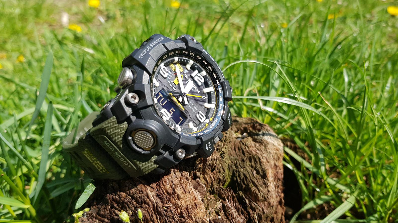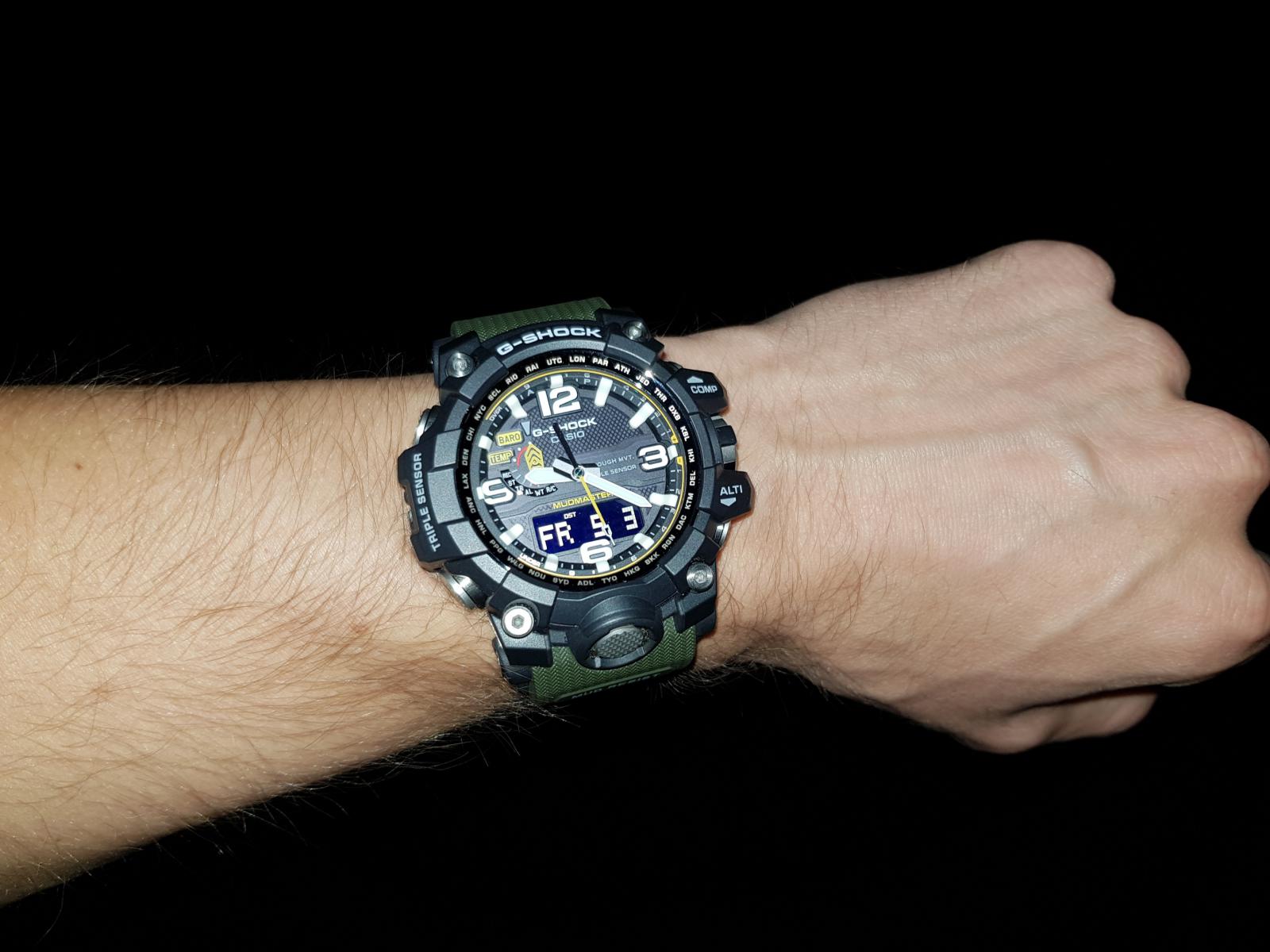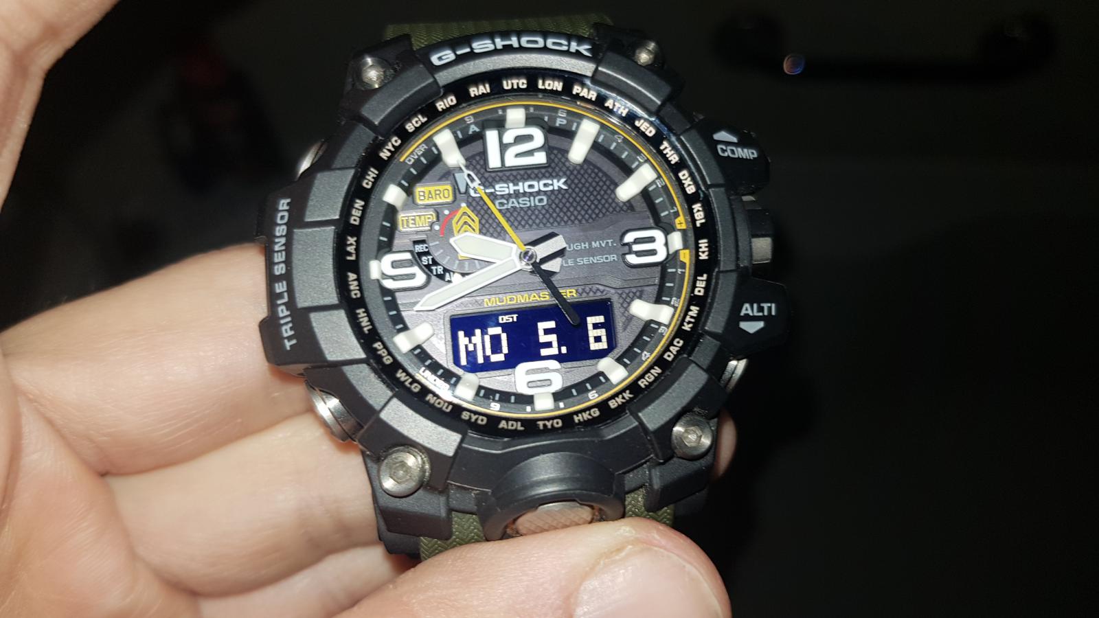 Tak se zdá, že u mě je Chrononemoc už v docela pokročilém stádiu. Před dvěma týdny mi přišly do sbírky Orienty a jedny obyč. G-Shocky. Když jsem je vybaloval, říkal jsem si, že si musím dát zase na nějakou dobu s nakupováním pokoj. Dva kousky za jeden týden naprosto stačí a stejně to přestává být kam dávat. Ale jak se říká, člověk míní, pán Bůh mění, tak že poslední den měsíce dubna odešla z mého noťasu do Helveti objednávka na další kousek. Když jsem Mudmastery od Casia zahlédl občas v obchodě (a to ještě jen v jejich starší a menší variantě), vždycky mi připdaly strašlivě obrovský. Mám velké hodinky rád - většina toho, co mám ve sbírce je vel. 42+, většinou 44 a Vostoky Amphibie mi připadají na ruce skoro malý - ale ty Mudmastery mi fakt přišly už moc. Prostě jsem si říkal, že i když se mi ty hodinky líbí, takový obludy bych asi na ruce mít nemohl. A tenhle stav přetrvával možná několik let. Během té doby mě chronobundus chytil naplno, tak že mi do sbírky přibyly orloje, na které bych se dřív neodvážil ani pomyslet. Victorinoxy, Seika, asi troje Vostoky a hlavně pro mě dva vrcholy: Breitlingy Colt a Omegy Moony. A pak mezi ně minulý rok přibyly i Casio G-Shock z řady MT-G. Hodinky s průměrem 55 mm a výškou asi 16. Prostě obludy o polovinu větší, než vše, co jsem měl dosud. Nebyl jsem si jistý, jaké budou, ale hrozně se mi líbily a na videích a fotkách na netu mi tak obrovitý nepřišly, tak jsem do nich nakonec šel. No a zjistil jsem, že i takto velké talíře se dají nejen nosit, ale dokonce nevypadají na ruce ani nijak nepřiměřeně. A někdy v té době se začal můj názor na Mudmastery měnit. Shlédl jsem několik videi, prošel tuny fotek a pozvolna jsem zjišťoval, že se mi fakt líbí. Tedy, líbily se mi už dlouho, ale připadaly mi až moc drsný a navíc celý plastový. Prostě mám rád na hodinkách kov. Paradoxně, změnu v tomto mém názoru mají na svědomí právě ty moje Casia MT-G. Jsou to super hodinky se super odolností, ale na té ocelové lunetě je vidět každé škrábnutí a na ostrých, ocelových hranách, kterých mají MT-G celkem dost, je také vidět všechno. A vzhledem k jejich velikosti a výšce není zas až tak velký problém s nimi někde štrejchnout. Navíc jsou relativně těžké, tak že i když zůstanou po pádu plně funkční a nepoškozené, na jejich ocelovém těle to prostě vidět bude. A díky tomu jsem si uvědomil, proč jsou skutečně drsné modely Casio (Mudmastery a Rangemany) platové. Tam, kde malé klepnutí nechá na ocelovém povrchu MT-G škrábanec, tam si toho ten odolnej plast ani nevšimne a většinu menších pádů prostě odpruží beze stop. Tak že mé váhání a úvahy o vhodnosti Mudmasterů skončili na konci měsíce dubna 2019. GWG-1000-1A3 dorazily v pátek, 3. 5. Popisovat klasické G-Shock balení s černou papírovou krabičkou a šestiúhelníkovou plechovkou asi nemá cenu, tak že přejdu rovnou k vybalení. Tyhle hodinky se řadí do tzv. kategorie Wow! Jinak řečeno, po otevření plechovky jsem se tomuto nebo podobnému citoslovci neubránil. Mudmastery jsou fakt velké a ten design... Prostě MT-G vedle nich vypadají skoro jako oblekovky. Vyndal jsem je a hned mě překvapilo, jak jsou lehké. Věděl jsem sice z netu, že jsou lehčí, než MT-G, ale podle vzhledu prostě očekáváte, že Mudmatery budou lepší jako těžítko, než na ruku. No, opak je pravdou. Nasadil jsem si je na ruku a skoro se dostavilo další Wow! Casio tyhle obry prostě umí a Mudy sedí na ruce prakticky dokonale. Díky chytře tvarovanému uchycení pásku a vložkám na okrajích dýnka tvoří jejich spodek oblouk, který perfektně kopíruje ruku, tak že hodinky nikde nepřečnívají a i při pohybu sedí jako přibité a ani se nehnou. Jednoduše řečeno, některé a mých menších hodinek (MT-G nevyjímaje), sedí a drží na ruce hůře, než Mudy. Tak že v tomhle ohledu musím dát Casiu za 1*. Udělat takovýhle obludy tak pohodlný, to přeci jen už nějaké to přemýšlení a zkušenosti vyžaduje. No, zkušenosti s nošením zatím nejsou velké, ale Mudy byly na ruce prakticky celý víkend a kdybych se na ně furt nekoukal, ani bych o nich na ruce nevěděl. A v sobotu u kamaráda na chatě dokonce prodělaly menší křest. Pálení chrastí, řezání a štípání polen, tahání nařezaných klád z roští a to všechno v dešti a docela drsném terénu. A Mudmastery si v tom prostě libovaly. Nepřekážely, seděly jak ulité jen se usmívaly. A i když byly celé od hlíny, trochu od popela, z jedné strany mokré od deště a z druhé opečené od ohně, byly v pohodě. A právě v těchhle podmínkách jsem ocenil velké, kontrastní ručičky a indexy, protože i přes špinavý ciferník zůstával čas stále čitelný. Jedinou výtku bych měl k displayi, který je inverzní, tak že jeho čitelnost není úplně ideální. Ale čísla jsou na něm dost velká, tak že to zase není až tak špatné. Kromě extrémních podmínek to je většinou v pohodě. Plzeňské slavnosti svobody už pro ně byly jen pohodová procházka, tak že svým khaki řemínkem jen vhodně doplňovaly můj emérický mundůr. Škoda, že jsem nějak zapomněl udělat jim pár fotek ve společnosti té techniky. Zrovna na pancíři M3 Stuarta by se vyjímaly suprově. Ale připadalo mi, že lidi by se asi koukali divně, kdybych si na tanku fotil hodinky. A navíc jsem měl na starosti pytel blech v podobě kámošova synátora (12), jehož tatínek bohužel do Plzně nemohl, tak mi ho na ty dva sny svěřil. Na focení hodinek nebyl čas, když jsem musel fotit klučinu u každé motorky, Jeepu a tanku, který jsme potkaly. Podtrženo a sečteno. Mudmastery jsou fakt super hodinky a i když není jejich cena zrovna nejnižší, vůbec koupě nelituj