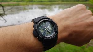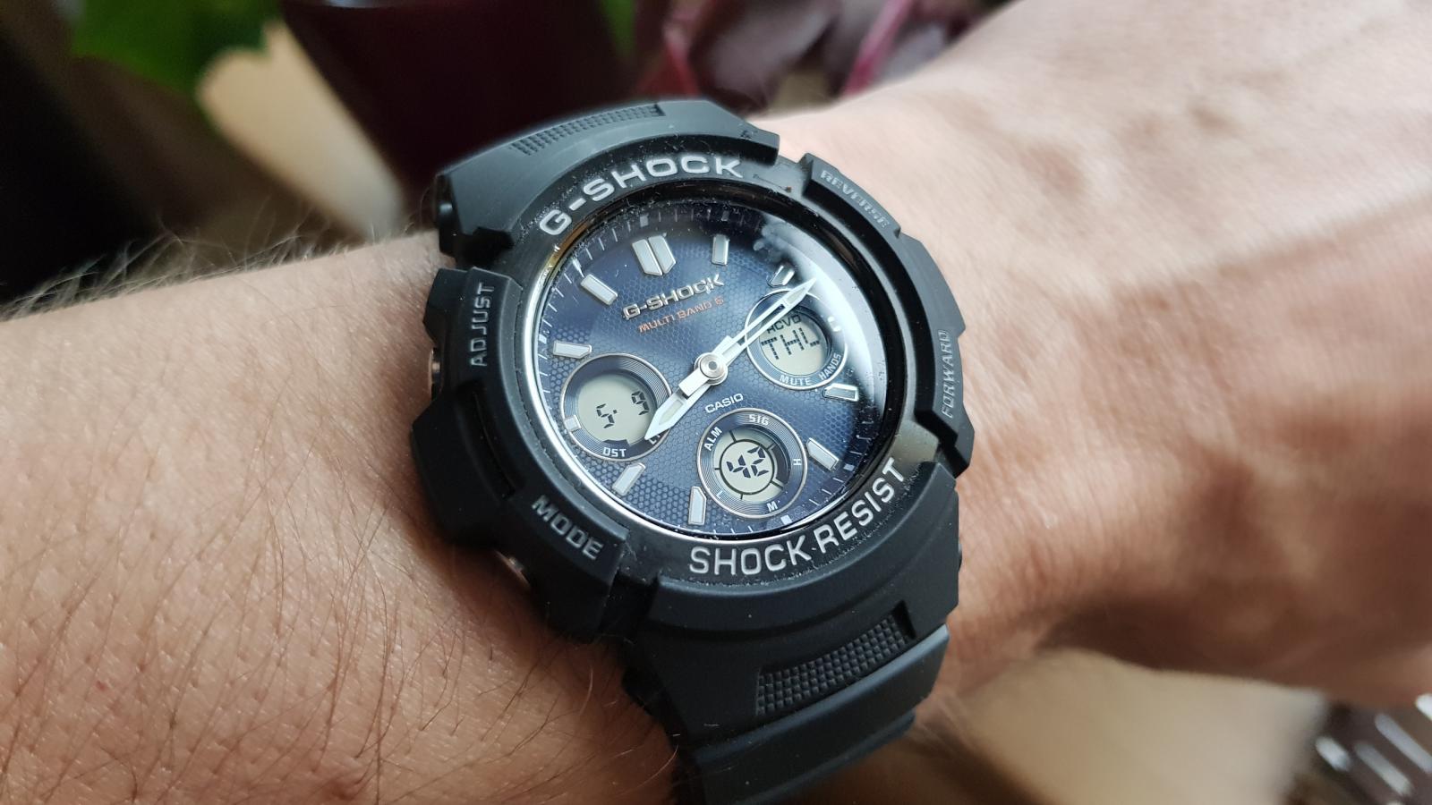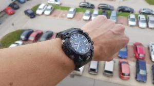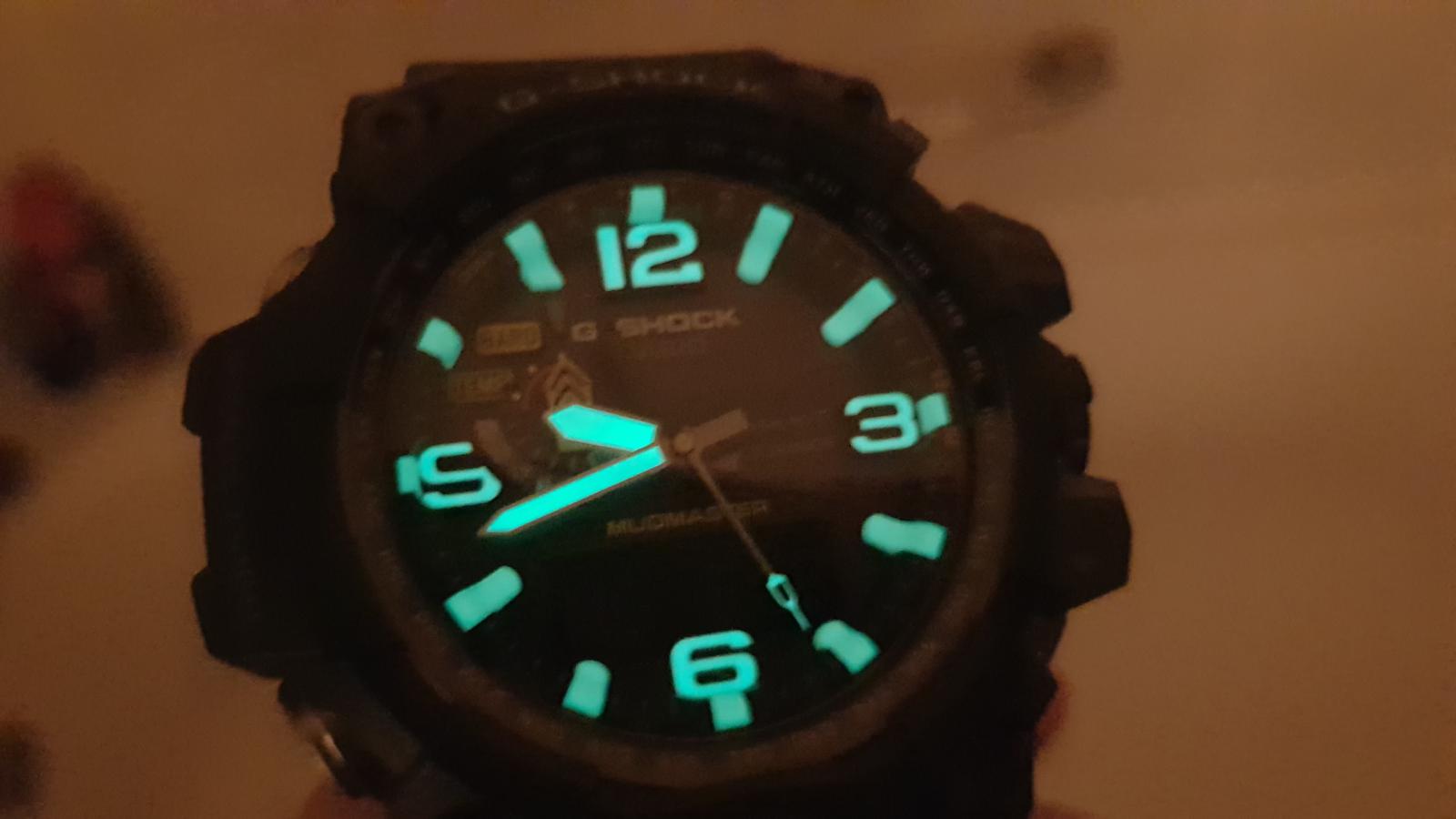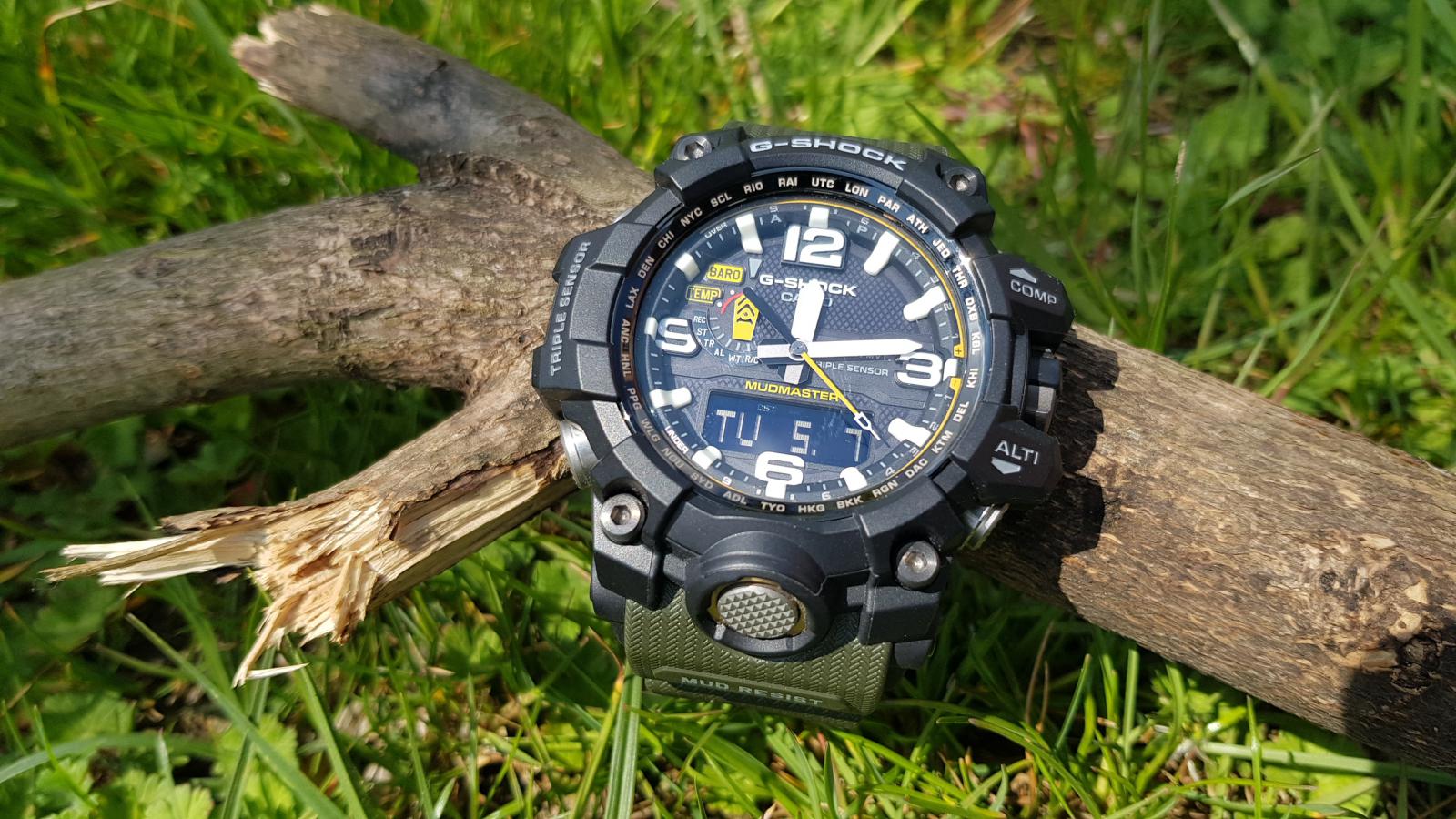 Tak se zdá, že u mě je Chrononemoc už v docela pokročilém stádiu. Před dvěma týdny mi přišly do sbírky Orienty a jedny obyč. G-Shocky. Když jsem je vybaloval, říkal jsem si, že si musím dát zase na nějakou dobu s nakupováním pokoj. Dva kousky za jeden týden naprosto stačí a stejně to přestává být kam dávat. Ale jak se říká, člověk míní, pán Bůh mění, tak že poslední den měsíce dubna odešla z mého noťasu do Helveti objednávka na další kousek. Když jsem Mudmastery od Casia zahlédl občas v obchodě (a to ještě jen v jejich starší a menší variantě), vždycky mi připdaly strašlivě obrovský. Mám velké hodinky rád - většina toho, co mám ve sbírce je vel. 42+, většinou 44 a Vostoky Amphibie mi připadají na ruce skoro malý - ale ty Mudmastery mi fakt přišly už moc. Prostě jsem si říkal, že i když se mi ty hodinky líbí, takový obludy bych asi na ruce mít nemohl. A tenhle stav přetrvával možná několik let. Během té doby mě chronobundus chytil naplno, tak že mi do sbírky přibyly orloje, na které bych se dřív neodvážil ani pomyslet. Victorinoxy, Seika, asi troje Vostoky a hlavně pro mě dva vrcholy: Breitlingy Colt a Omegy Moony. A pak mezi ně minulý rok přibyly i Casio G-Shock z řady MT-G. Hodinky s průměrem 55 mm a výškou asi 16. Prostě obludy o polovinu větší, než vše, co jsem měl dosud. Nebyl jsem si jistý, jaké budou, ale hrozně se mi líbily a na videích a fotkách na netu mi tak obrovitý nepřišly, tak jsem do nich nakonec šel. No a zjistil jsem, že i takto velké talíře se dají nejen nosit, ale dokonce nevypadají na ruce ani nijak nepřiměřeně. A někdy v té době se začal můj názor na Mudmastery měnit. Shlédl jsem několik videi, prošel tuny fotek a pozvolna jsem zjišťoval, že se mi fakt líbí. Tedy, líbily se mi už dlouho, ale připadaly mi až moc drsný a navíc celý plastový. Prostě mám rád na hodinkách kov. Paradoxně, změnu v tomto mém názoru mají na svědomí právě ty moje Casia MT-G. Jsou to super hodinky se super odolností, ale na té ocelové lunetě je vidět každé škrábnutí a na ostrých, ocelových hranách, kterých mají MT-G celkem dost, je také vidět všechno. A vzhledem k jejich velikosti a výšce není zas až tak velký problém s nimi někde štrejchnout. Navíc jsou relativně těžké, tak že i když zůstanou po pádu plně funkční a nepoškozené, na jejich ocelovém těle to prostě vidět bude. A díky tomu jsem si uvědomil, proč jsou skutečně drsné modely Casio (Mudmastery a Rangemany) platové. Tam, kde malé klepnutí nechá na ocelovém povrchu MT-G škrábanec, tam si toho ten odolnej plast ani nevšimne a většinu menších pádů prostě odpruží beze stop. Tak že mé váhání a úvahy o vhodnosti Mudmasterů skončili na konci měsíce dubna 2019. GWG-1000-1A3 dorazily v pátek, 3. 5. Popisovat klasické G-Shock balení s černou papírovou krabičkou a šestiúhelníkovou plechovkou asi nemá cenu, tak že přejdu rovnou k vybalení. Tyhle hodinky se řadí do tzv. kategorie Wow! Jinak řečeno, po otevření plechovky jsem se tomuto nebo podobnému citoslovci neubránil. Mudmastery jsou fakt velké a ten design... Prostě MT-G vedle nich vypadají skoro jako oblekovky. Vyndal jsem je a hned mě překvapilo, jak jsou lehké. Věděl jsem sice z netu, že jsou lehčí, než MT-G, ale podle vzhledu prostě očekáváte, že Mudmatery budou lepší jako těžítko, než na ruku. No, opak je pravdou. Nasadil jsem si je na ruku a skoro se dostavilo další Wow! Casio tyhle obry prostě umí a Mudy sedí na ruce prakticky dokonale. Díky chytře tvarovanému uchycení pásku a vložkám na okrajích dýnka tvoří jejich spodek oblouk, který perfektně kopíruje ruku, tak že hodinky nikde nepřečnívají a i při pohybu sedí jako přibité a ani se nehnou. Jednoduše řečeno, některé a mých menších hodinek (MT-G nevyjímaje), sedí a drží na ruce hůře, než Mudy. Tak že v tomhle ohledu musím dát Casiu za 1*. Udělat takovýhle obludy tak pohodlný, to přeci jen už nějaké to přemýšlení a zkušenosti vyžaduje. No, zkušenosti s nošením zatím nejsou velké, ale Mudy byly na ruce prakticky celý víkend a kdybych se na ně furt nekoukal, ani bych o nich na ruce nevěděl. A v sobotu u kamaráda na chatě dokonce prodělaly menší křest. Pálení chrastí, řezání a štípání polen, tahání nařezaných klád z roští a to všechno v dešti a docela drsném terénu. A Mudmastery si v tom prostě libovaly. Nepřekážely, seděly jak ulité jen se usmívaly. A i když byly celé od hlíny, trochu od popela, z jedné strany mokré od deště a z druhé opečené od ohně, byly v pohodě. A právě v těchhle podmínkách jsem ocenil velké, kontrastní ručičky a indexy, protože i přes špinavý ciferník zůstával čas stále čitelný. Jedinou výtku bych měl k displayi, který je inverzní, tak že jeho čitelnost není úplně ideální. Ale čísla jsou na něm dost velká, tak že to zase není až tak špatné. Kromě extrémních podmínek to je většinou v pohodě. Plzeňské slavnosti svobody už pro ně byly jen pohodová procházka, tak že svým khaki řemínkem jen vhodně doplňovaly můj emérický mundůr. Škoda, že jsem nějak zapomněl udělat jim pár fotek ve společnosti té techniky. Zrovna na pancíři M3 Stuarta by se vyjímaly suprově. Ale připadalo mi, že lidi by se asi koukali divně, kdybych si na tanku fotil hodinky. A navíc jsem měl na starosti pytel blech v podobě kámošova synátora (12), jehož tatínek bohužel do Plzně nemohl, tak mi ho na ty dva sny svěřil. Na focení hodinek nebyl čas, když jsem musel fotit klučinu u každé motorky, Jeepu a tanku, který jsme potkaly. Podtrženo a sečteno. Mudmastery jsou fakt super hodinky a i když není jejich cena zrovna nejnižší, vůbec koupě nelituj