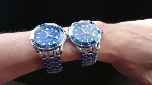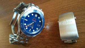 Vzhledem k tomu, že patřím mezi ty nešťastníky, kterým se obvod zápěstí během dne dost mění, a zároveň nerad nosím hodinky na tahu příliš volně, nebyl jsem schopný na mých SMP nastavit ideální délku tahu. NATO pásky mě baví jen chvíli a nakonec se vždy vrátím k origo oceli. Když jsem se tedy dozvěděl, že na keramické SMP (41 mm) pasuje spona s mikroregulací ze Seamaster Master, neváhal jsem. Sponu jsem objednal u Altmana v Plzni. V českém servisu Omegy nebyla skladem a museli ji objednat ze Švýcarska, takže doba dodání se protáhla na celý měsíc. Čekání se ale vyplatilo... Výměna, stejně jako u prodloužení/zkrácení tahu, spočívá jen v povolení několika šroubků. Nová spona je oproti té původní silnější i delší (po výměně jsem odebral jeden článek tahu). Regulační mechanismus umožňuje prodloužit délku o cca 9 mm (celkem šest poloh). Celkově jsem ze spony nadšený, i když si pořád myslím, že u hodinek v této cenové kategorii by ji výrobce měl dávat standardně a ne až u dražšího modelu. A nakonec dobrá zpráva pro i ty, kdo vlastní starší verzi bondovek, případně PO. Tato spona se dá použít i pro tah bez šroubků, viz obrázkový návod zde: http://forum.tz-uk.com/showthread.php?363772-SM300Mc-Clasp-fitted-to-POC-42-45mm-as-well-as-PO-Chrono