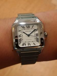 Mal som na rukach naraz aktualny santos aj tank v midsize a santos teda vyhrava bez debaty. Tank na fotke vyzera fajn, ale ked som dal na ruku ten naramok, tak to teda urcite nie a aj hodinky same o sebe na ruke tiez nejak extra nesedia. Do obchodu som isiel s preferenciou tanku a santos ze si skusim tak na okraj. Vysledok je ten, ze o tanku uz vobec neuvazujem, aj ked stoji polovicu toho co santos.