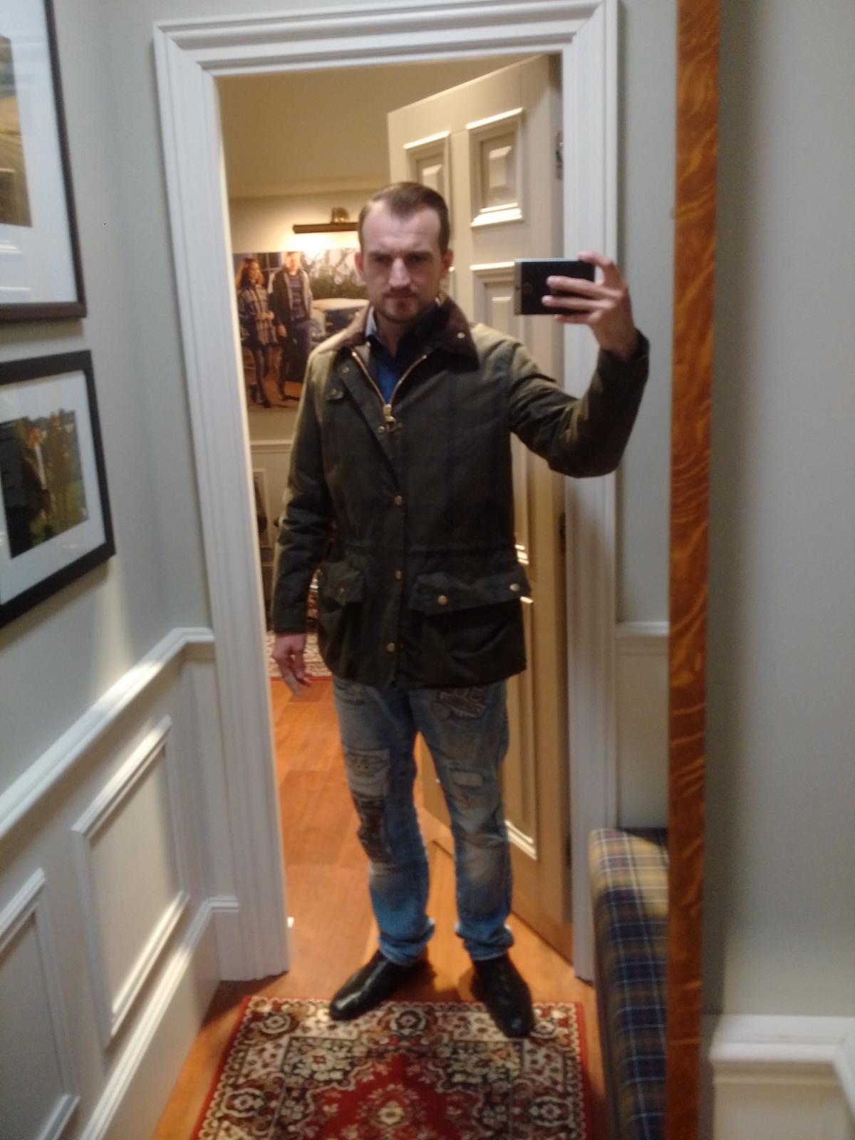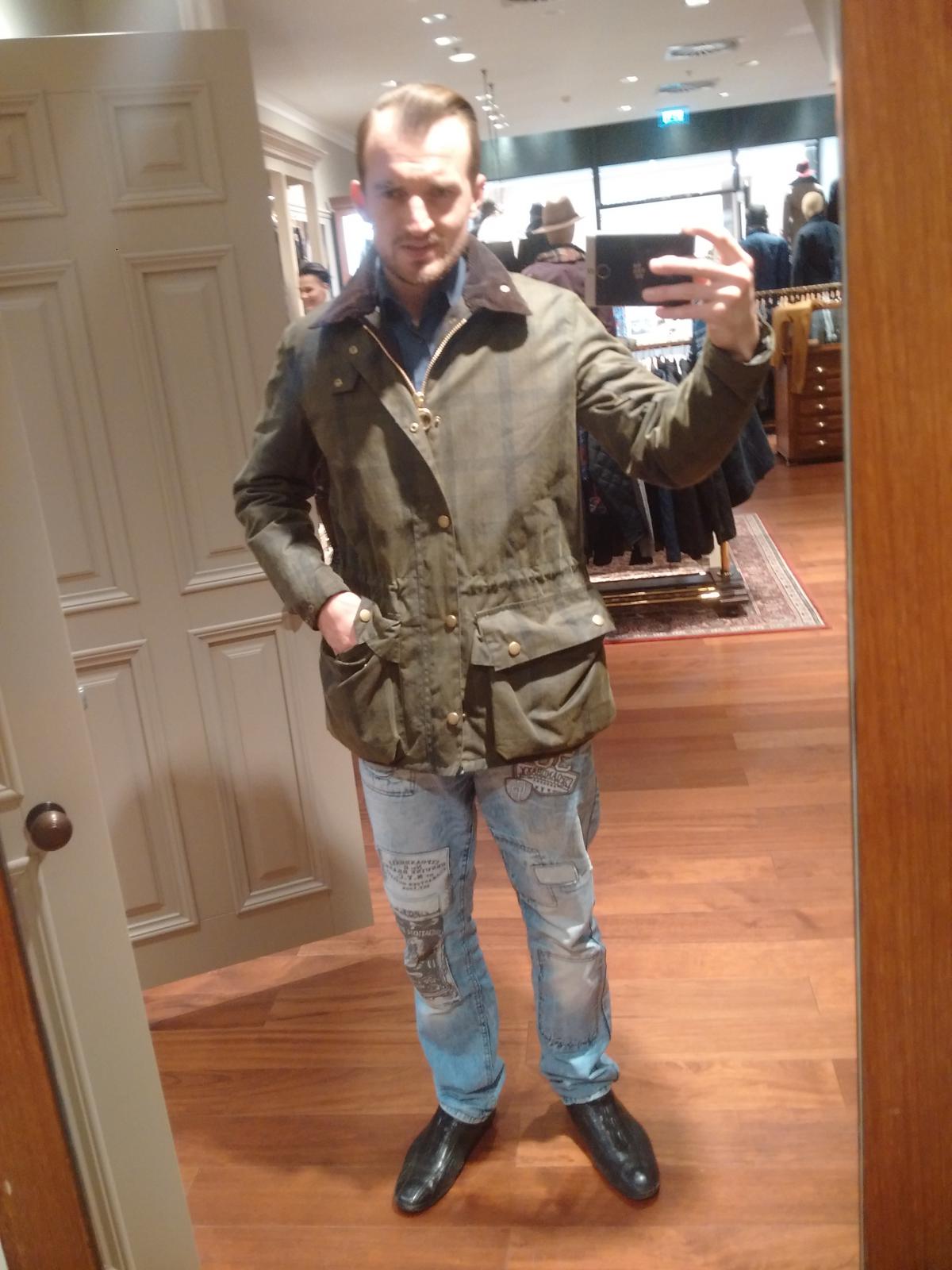 Tak tady je bunda, šel jsem pro bedale ale pytel, beuafort to samý... Tak jsem na sebe naházel všechno co šlo a asi nejlepší mi přišla tahle, je to taky voskovka celkem teplá s odnímací kapucou, velikost M, nad kapsami stahovací provázek (ala parka).. Je to Barbour Beattock Ps: rifle jsme vyřešily, boty.. Lloyd nazouvací kvůli rychlosti pžezouvání u zkoušení ostatních bot... Jinak celkově to k sobě nejde to vím sám, netřeba upozornit .... Nevím co ta bunda, jaký na ní máte názor ? Díky pánové