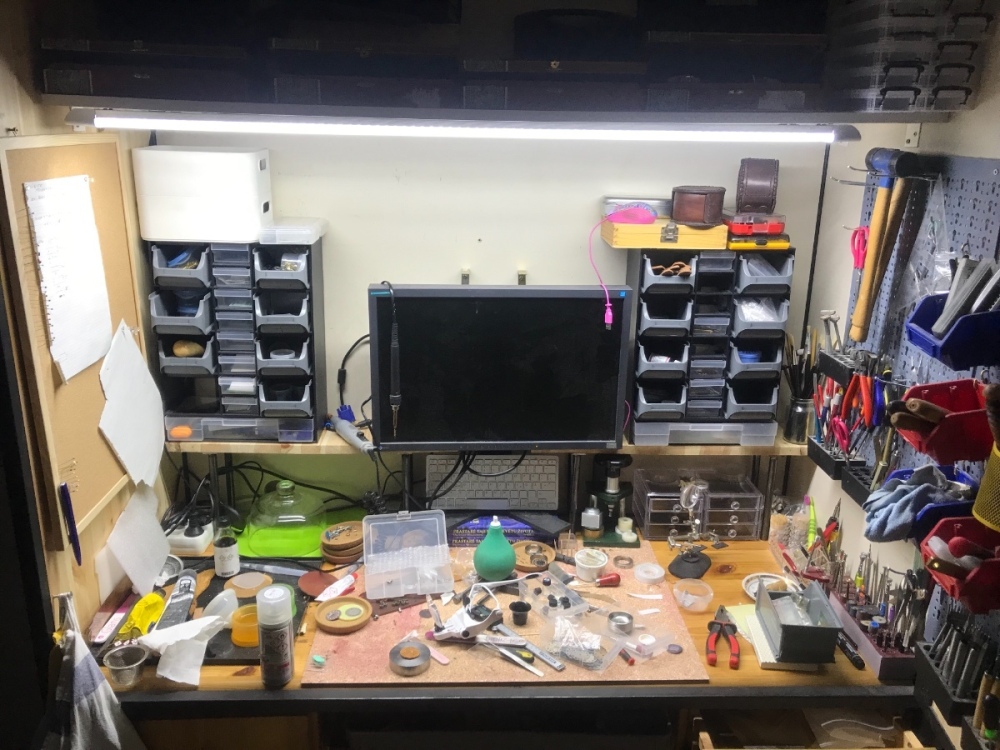 jenom v rychosti, jeste makam u stroje, nedari se mi doladit vyrobu novych ciferniku, ale to se podda, zaroven behem laserovani davam dohromady korunky, je s tim piplacka k mincim - dle ohlasu to vypada, ze to toho pujdu, zapomel jsem zminit jednu dulezitou vec, mince nahradi taky zarucni karticku, u te jedne v baleni bude na ni vyryto seriove cislo hodinek, ktere taky bude slouzit jako kod beru to tak, ze v podstate 100% zakazniku si tuto minci uz pri nakupu "vymeni" za dalsi pouzdro a nemyslim si, ze bude nejaky velky zajem nakupovat mince samostatne, urcite ne tak velky, aby me to v budoucnu nejak mrzelo samozrejme taky bude vymena nastavena tak, ze mince bude mozne standardne uplatnit jenom na bezna pouzdra, tedy mozne limitky jako damaskova, stribrna, platinova pouzdra budou bud za mince nedostupna, nebo spis za odpovidajici pocet minci nemam to porad jeste propocitany a nastaveny, ackoliv nejakou predstavu uz samozrejme mam, nemam ted cas se tomu venovat kazdopadne co vim uz ted, jedna mince bude mit hodnotu jednoho pouzdra vcetne lunety a korunky (jeste zvazuji i vcetne reminku a prezku, to by asi bylo zahodno) material bude pravdepodobne bronz kazdopadne jsem alespon uz zjistoval, na kolik me prijdou raznice a vypada to tak, ze si je budu vyrabet sam ale to se rozhodnu az v okamziku, kdy budu mit hotovy graficky navrh mince, mozna mi to moje technologicke vybaveni neumozni no a obligatni foto, dnes jenom bordelu na stole a zrovna mi dojel laser, tak i dalsi foto