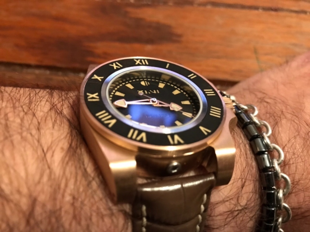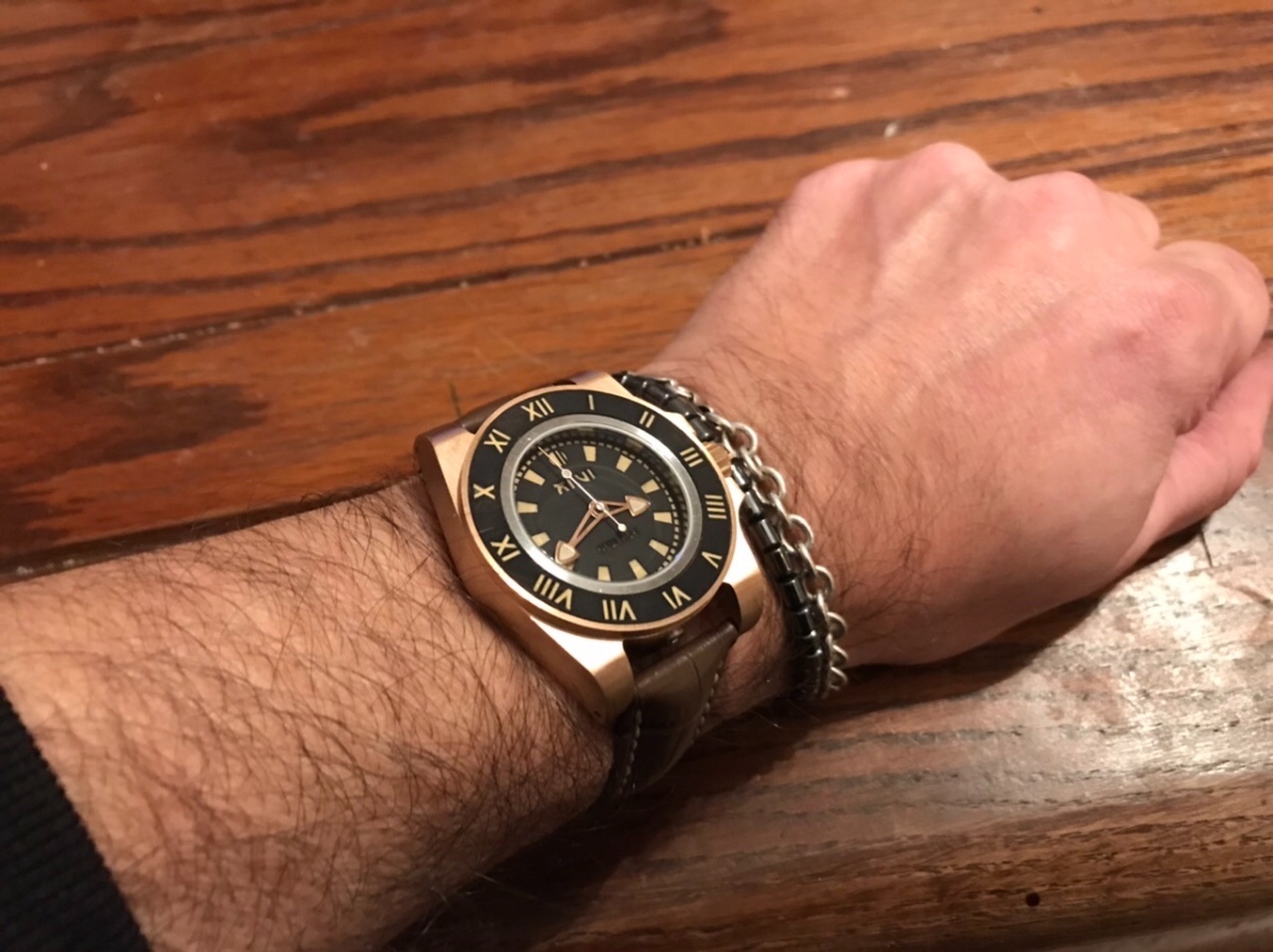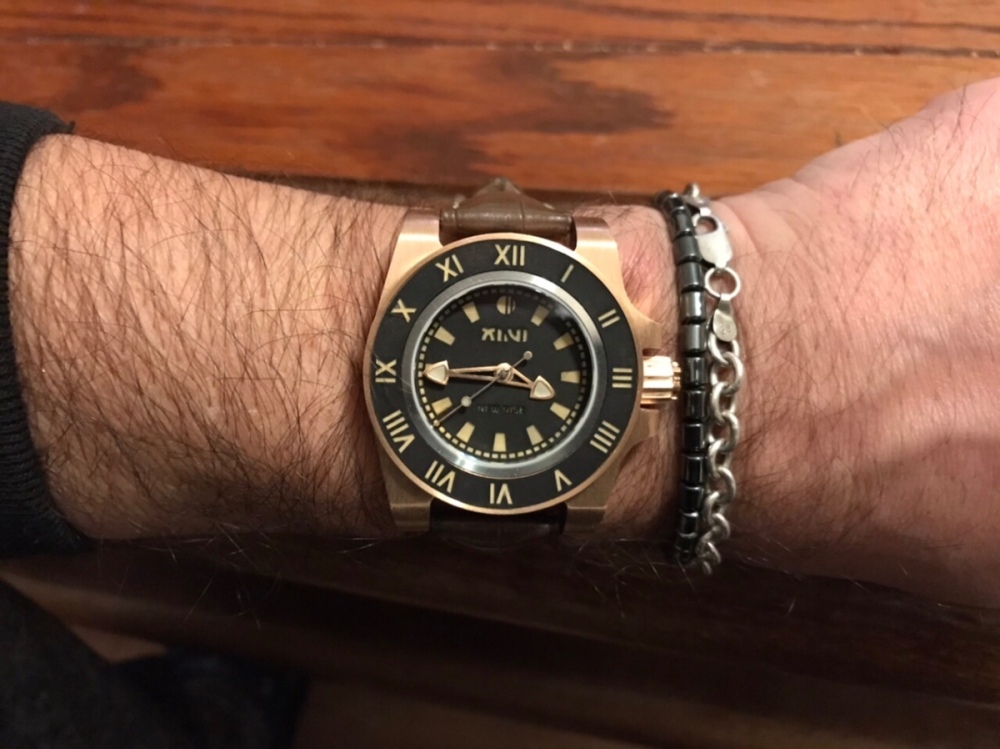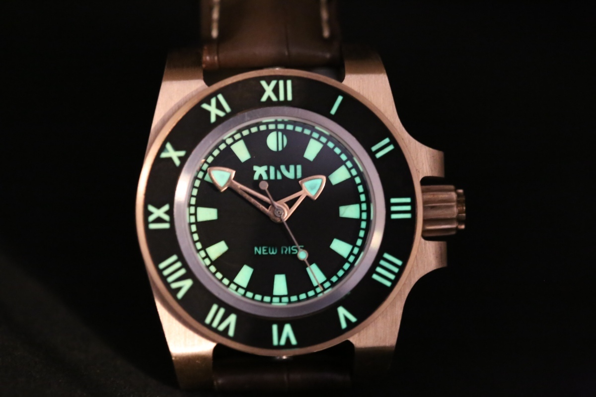 XIIVI New Rise No. MMXXII/XXII Diameter without crown: 40mm, 46mm L2L, Lug 20mm Case height: 12mm CoreCase: Stainless Steel 316L Dial / hands: Copper / Bronze CuSn8 Bezel (replaceable) : Bronze CuSn8 or Stainless Steel 316L TopCase (replaceable): Bronze CuSn8 Crown (replaceable) : Bronze CuSn8 or Stainless Steel 316L Movement: Swiss ETA 2824-2 Automatic