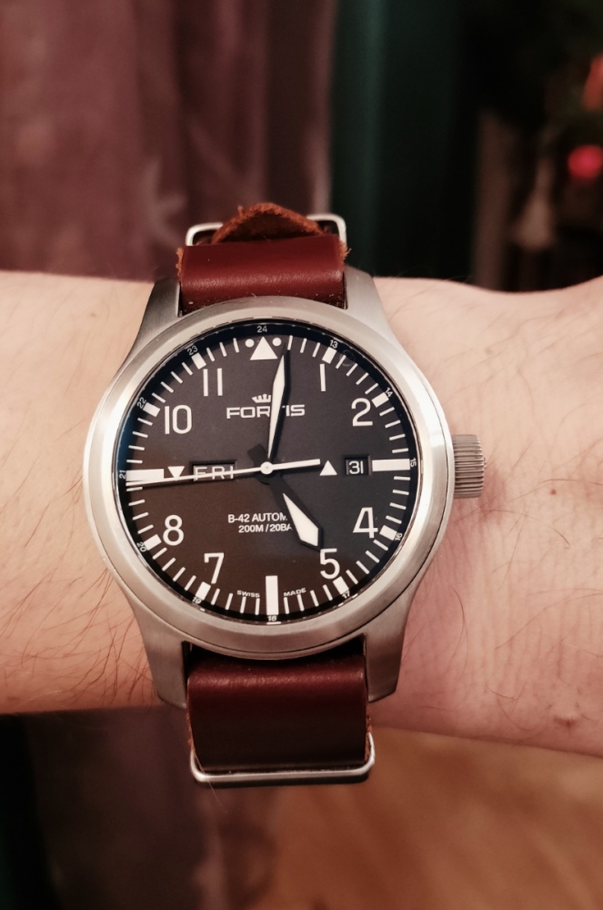 Z mojí zkušenosti ten Fortis řemen je dost ubohá kvalita a moc dlouho nevydrží. Já jsem ho dal dolů snad už po týdnu. A to jsem je kupoval fungl nový. Několikrát jsem ho tam zkoušel zase dát, ale vždycky jsem ho zase sundal. Ta tvoje guma na tom vypadá dost hrozně. Zato ten Rios vypadá je super. Pro zkoušku ještě doporučím: kup si Rios Oxford. Černý nebo ten hodně tmavě hnědý. Je to pořádný tlustý řemen a k těm masivním hodinkám se hodí.