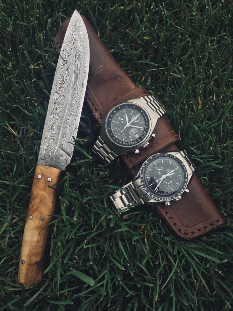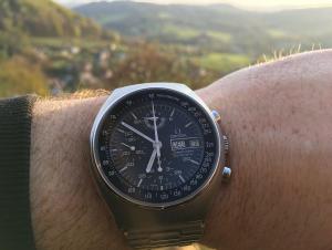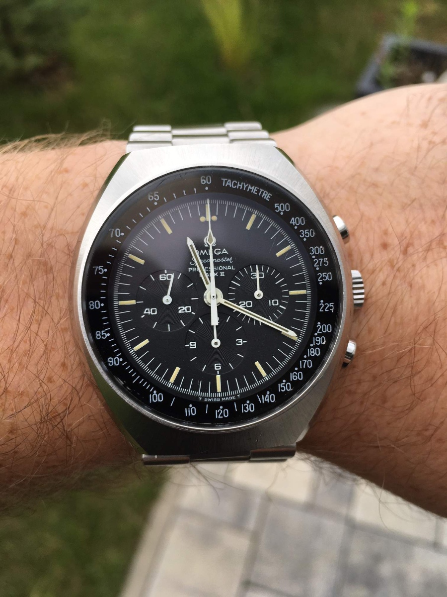 Ahoj, chvíli jsem tady procházel forum, ale rozhodl jsem se nakonec si založit galerii a značit si co mi prošlo rukama Takže moje první do sbírky jsou Omegy Mark 4.5 (176.0012). Byl to takový trošku impulsivní nákup v aukci na ebay. Jsou relativně ve slušném stavu, strojek funguje perfektně. Pouzdro bylo určitě broušené, ale řekl bych že velmi pěkně. Hrany jsou ostré a takové jaké mají být. Lumi na ciferníku je rozpadlá a odstraněná, trošku poškodila cifr (pár stop po ní), ale na ruce to není vidět. Ručky předpokládám servisní? Ale přece jen jsem je kupoval na nošení než jako sbírkové originály čemuž i odpovídala cena Nejhůř na tom byla spona na origo tahu 1162/172 (rozepíná se mi), takže jsem zatím dočasně na Geckota meshi než objednám nějaký Shark nejspíš.