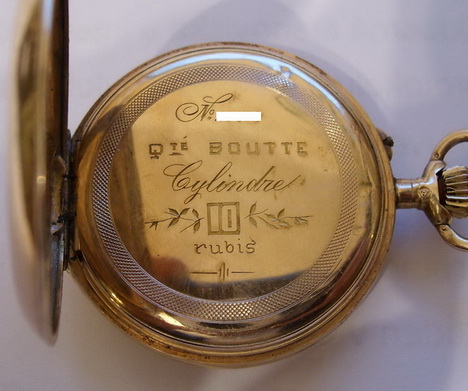 Vnější plášť je ozdoben 2 ptáčky, 3 kamínky a rytými kytičkami, na vnitřním plášti mají vyryto Q té Boutte Cylindre, pětimístné číslo a jsou ze 14 karátového zlata. Ale jsou bohužel nefunkční.