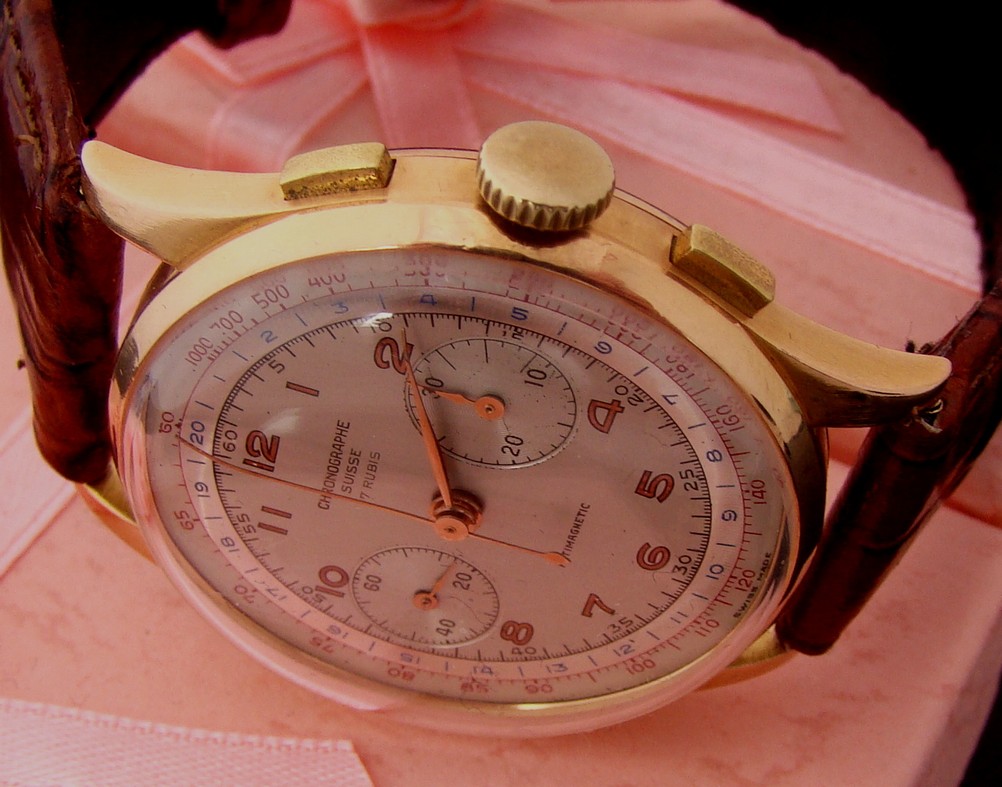 Tak se mi konečně podařilo dokončit gen. opravu (samozřemně s pomocí našich oblíbených hodinářů). Přesnost (+10 sek/den), stav nádherný, plně fukční, jsem šťasný. Ještě by to chtělo jiný řemen.Nemáte někdo nějaký tip? Fotit hodinky ve 14:10 může fakt jenom "cyp" jako já..