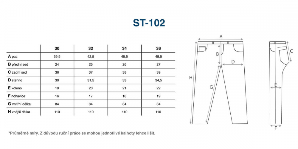 42cm v klidu, díky elastanu se natáhnou na 45cm. Jsou neprané, takže by se ještě měly srazit... Jsou neuvěřitelně pohodlné EDIT: tady jsem našel střih, měl by to být konkrétně tenhle.