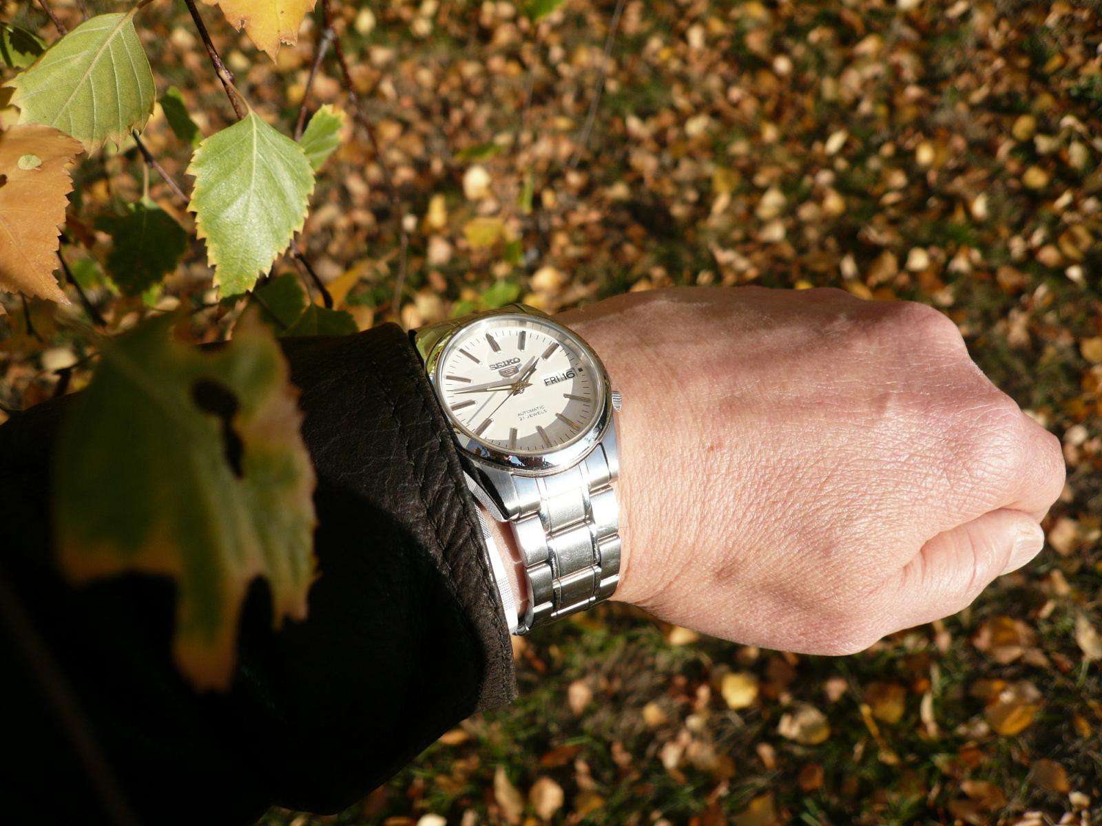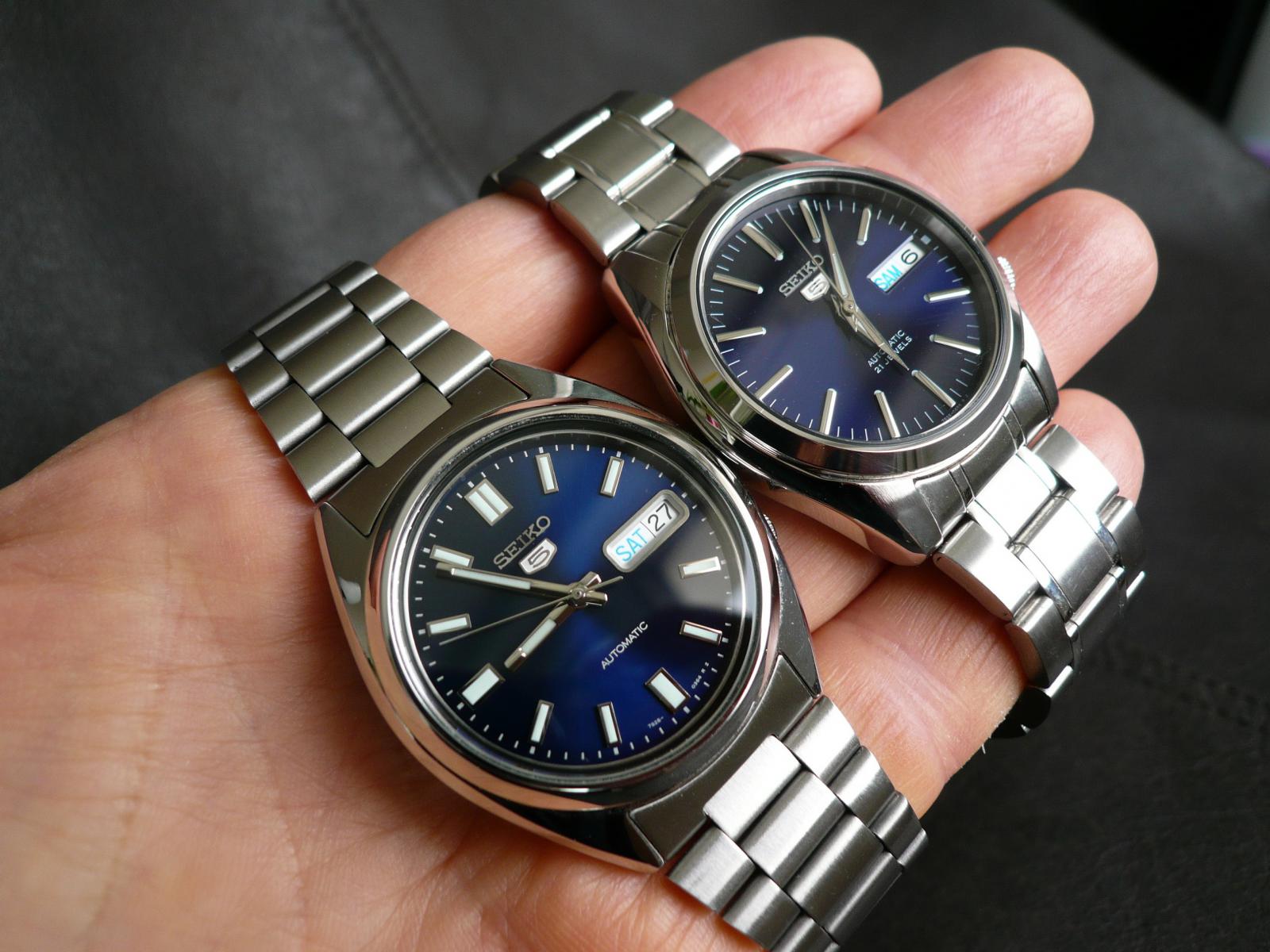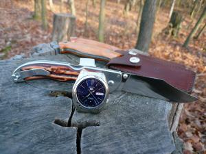 ahoj, nějakou dobu už jsem na chmg přihlášený, něco málo už jsem napsal (i když moc nemám co) a až teď jsem si všiml tohoto vlákna. Živé stroječky (stejně jako ostré a jezdící věci, zvířata, holky atd.) mám rád od dětství, takže bývaly nějaké primky, nějaké ruské (slavy, které jsem dostal v 17 letech mám doteď a když jsem je po 38 letech natáhl, jdou jakoby nic s cca minutou do plusu denně) a v devadesátých letech, když bylo za co, začaly se nějakým nepochopitelným způsobem hromadit nějaké hodinky jako vintážní omegy (cca 25 let staré v nos stavu, asi seamastery), orisy (big crown, pointer date, mercedes ručky a zdobený ciferník ala 40. léta), dědečkovské s ručním nátahem ... Skončilo to koncem roku 1994, kdy jsem stál u pana Bechyněho ve Štěpánské, v jedné ruce rolexy, ve druhé vacheron constantin nebo frederic constant (modely už si nepamatuju), za pultem se na mě s úsměvem díval pan Bechyně a já si říkal, že se přece nebudu trápit a vezmu oboje ... za chvíli mi došlo, co dělám, během cca tří týdnů jsem prodal všechno, co doma bylo, a cca 22 let jsem nosil obyčejné plasťáky. To byla sice krajně bolestivá, ale za to velmi účinná léčba, nicméně úplně vyléčit se to už nedá, stejně jako u nožů. Ale už to mám pod kontrolou. Myslím. No, priority jsou po těch letech jiné v každém případě. Před cca třemi lety, po rozvodu a zhroucení ostatních životních pilířů, jsem si řekl, že už je možná čas na nějaké hodinky ... přece se teď už nebudu trápit (už zase). První podstatné byly Candino classic s čárkovými ručkami a indexy a malou vteřinovkou na 6 (a bohužel rondou, kterou mi po dvou reklamacích vyměnili za nějakou etu), a následovaly Tiselly s bílým smaltovaným ciferníkem, římskými číslicemi, modřenými ručkami, no date a malou vteřinovkou, vypouklým safírem s vnitřním AR a pouzdrem s PVD rose gold. Nemůžu říct jediné křivé slůvko, v koscomu mi je nařídili na 10 vteřin do plusu a několik měsíců šly + 10 vteřin / den. Kdysi jsem takové námořní chronometry viděl naživo a tohle byl splněný sen z mládí, všechny ostatní značky měly pouze nerez pouzdra. Nosil bych je a nic neřešil, ale 44 mm a 51 mm L2L bylo prostě moc. Měl jsem tehdy zchromlou ruku a nemohl je natáhnout, v inzerci jsem koupil SARB035 a z třeskuté blbosti je zase prodal. Chvíli jsem si tedy připadal divně s dětskými hodinkami na ruce, ale asi po hodině jsem si už neuměl představit, že bych si dal na ruku nějaké větší. No, na seiko jsem nikdy vysazený nebyl, takže jsem si pořídil pětky SNXS77 kvůli nádherné modré a klasickému vzhledu, potom SNKL41, protože jsem ujetej na bílé ciferníky a tyhle se mi líbily dokonce víc než sarby, a nakonec SNKL43, protože mají ještě krásnější modrou ... a zjistil jsem, že ještě ujetější jsem ny modré ciferníky, jen se to zatím neprojevilo. Mezitím jsem od 5ettera vzal jeho bílé vintážní pětky (časem půjdou dál, jen se na ně zatím pořád rád dívám) a mimo inzerci jsem vzal SKX013, protože jsem si je chtěl zkusit naživo. Sedí skvěle, ale neunosím je, takže poputují dál nebo do krabice. Od obou SNKL mám dvoje, protože už nejdou běžně koupit a co kdyby ... ale takhle to mám i u nožů, no vlastně tam o něco hůř. Všechno přitom bylo cenově v pásmu plasťáků s prioritou účelnosti. Na SNKL mi pánové v Pražském hodinářství dali safír (mírně vypouklý s vnitřním AR, oboje mají zlatavý nádech) a přetěsnili je na 5ATM, takže jediná skutečně drobná výhrada je absence ručního nátahu, jinak mi poskytují vše, co chci, včetně přesnosti - bílé 0 až +1 s/d, modré teď - 6 s/d, čeká je seřízení, ale i tak je to u toho strojku myslím dost dobrý. Nejsem žádný měnič ani u hodinek, ani u jiných oblíbeností, a i volba mezi bílou a modrou byla ze začátku těžká schíza, nakonec ale lehce převážila modrá. Vlastně jsem teď bicolor OWG. Velmi rád sem chodím, dívám se na stroječky a nasávám nové věci a díky fotkám přišly první modré pětky. Je to prostě dobré místo.