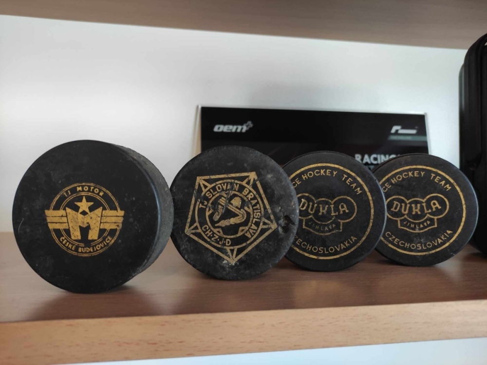 O víkendu mě potěšil táta, když konečně našel, i když jen malou část, mé staré sbírky puků. Je jim více než 40 let, sbíral jsem je jako kluk. Ve městě vedle naší vesnice byla prodejna hračky- sport a tam jsem moc rád chodil, mělo to tam takovou zvláštní atmosféru. No a vždy když přišly nové puky, tak jsem si koupil. Jen by mě zajímalo, kde skončil ten zbytek, hlavně těch nových, nepoužitých...