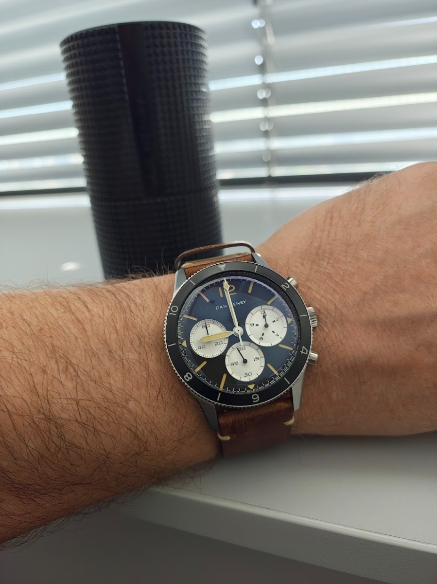 velkosť 42,5mm, zafír.sklíčko, kožený remienok + čierne NATO, púzdro.