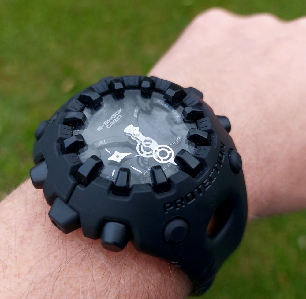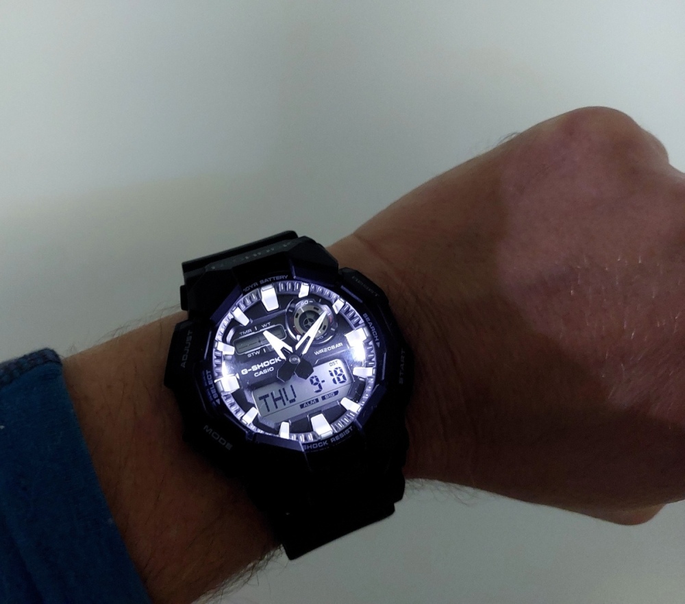 na ruce mi sedí výborně, zkrátka jako přisáté, mám konfekční velikost zápěstí, ale zahnutí pouzdro/řemen je +-dané. tlačítka super, čitelnost - ručky super, indexy nejsou moc viditelné, ale zato hmatatelné , displej klasicky mizérie.. plusem je velikost fontu (ve srovnání se zoufale malým u 2100 (u 950 to bude ještě větší bída)), minusem klenuté sklo a odlesky. modul funkčně shodný s ga2100. pípák tak průměr - horší než dw5600 a lepší než gwm5600. jinak srovnání velikostí je ošidné, díky organickému tvaru se hůř hodnotí. ..k pořízení jsem zneužil svého momentálního casio období a brzy se zase navrátím k orientu a citizenu, ale tyhle příšery mi zůstanou, protože si zkrátka zaslouží být v mé vytříbené sbírce