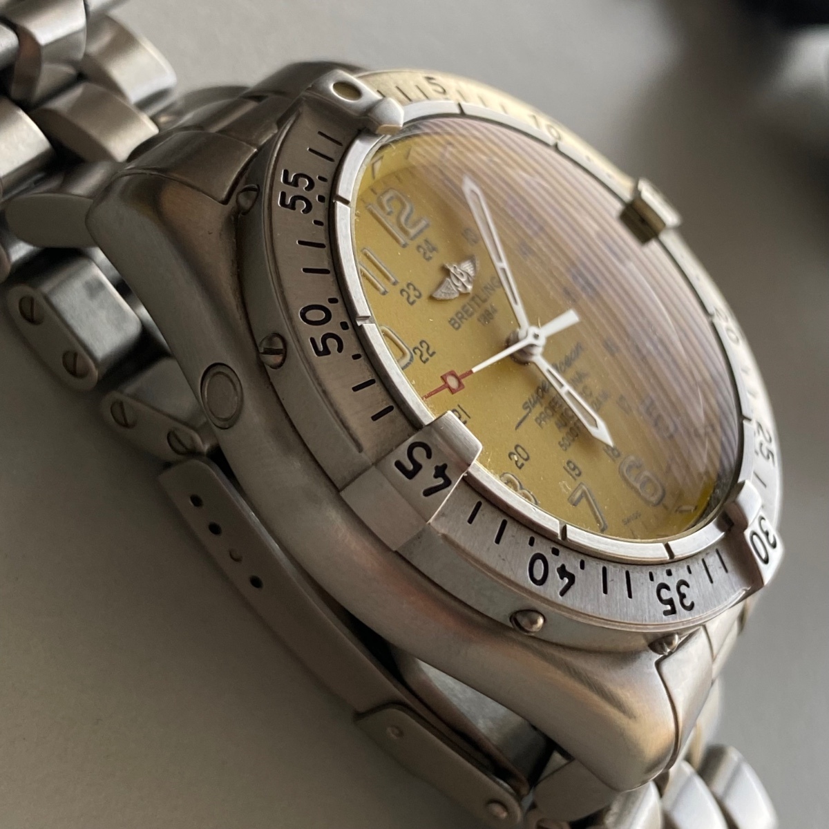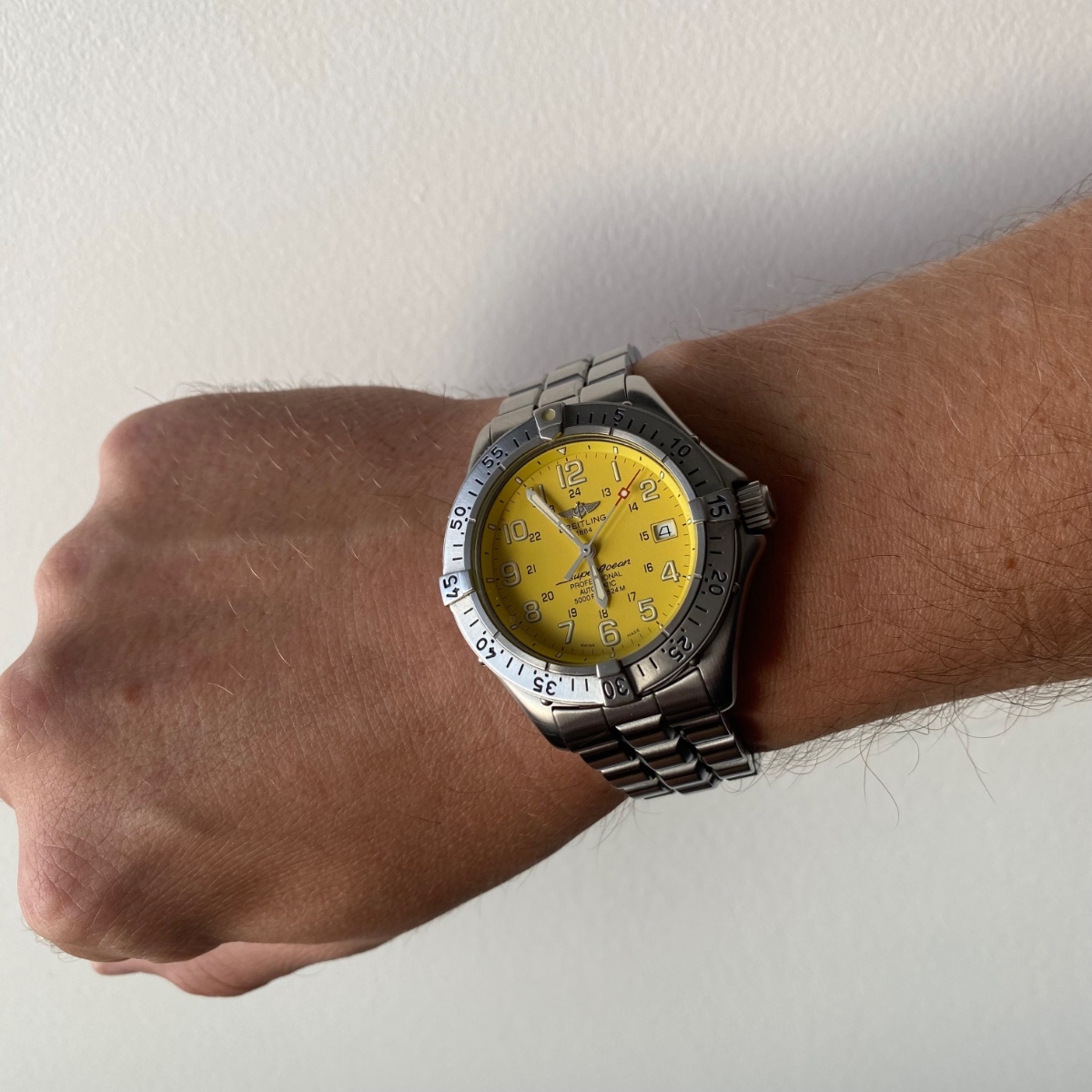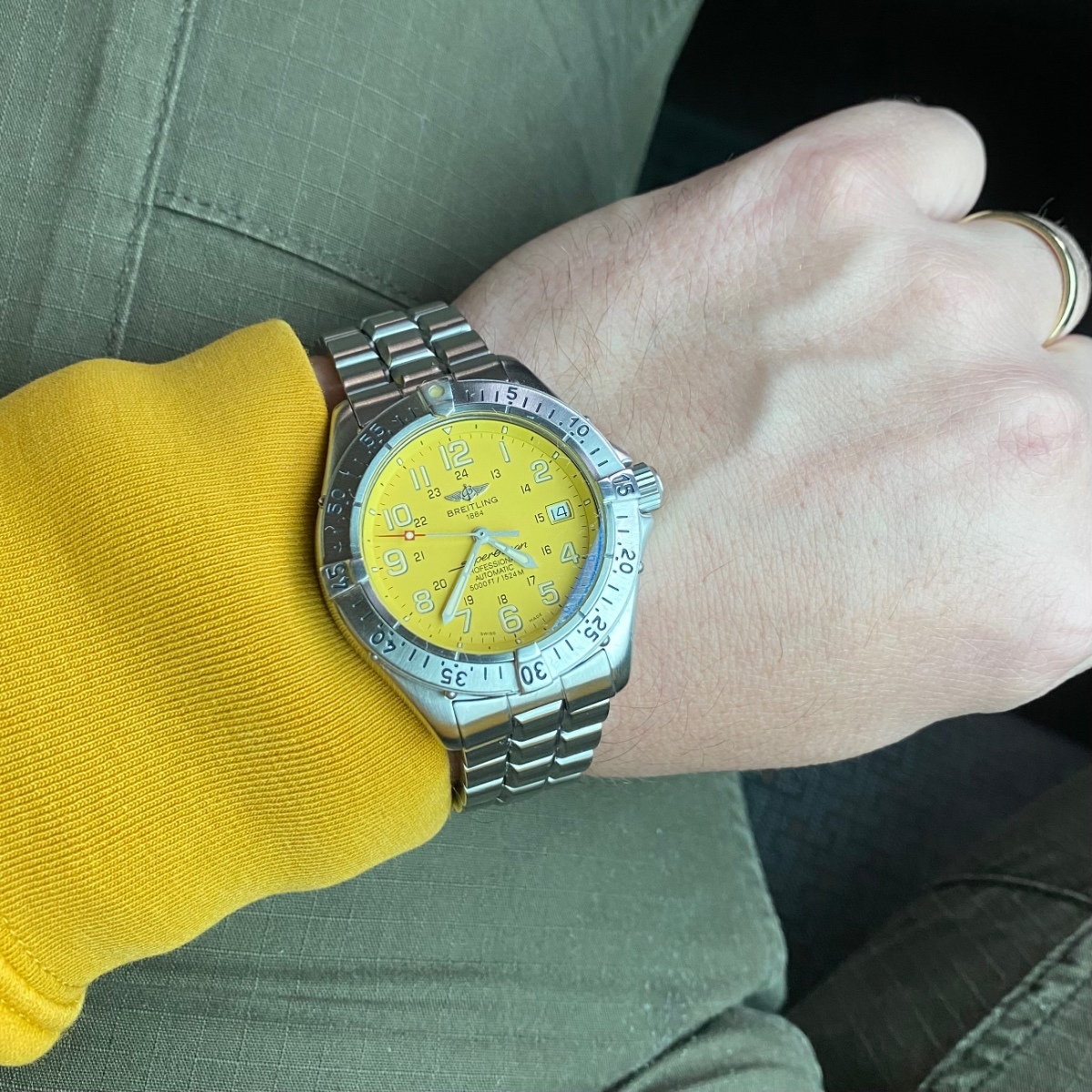 @Spongebob jen co ja vim - ctvereckovy rucicky jsou starsi. taky mas novejsi hodinovku bez preruseni. On ma starsi pouzdro ktere ma oblejsi hrany. Taky ma Professional I naramek se strednim clankem vyssim, dilky rovne. ty mas uz Professional II se sikmymi dilky, ale porad jeste stejne sirokymi. Zda se ze on ma vsechny dilky lestene, ale delaly se i s lestenym stredem a brousenymi okraji, i opacne, i vsechny lestene. Ocicko na lunete ma ramecek, takze on ma jeste o jedno novejsi verzi, jeste starsi mela ocicko bez ramecku - coz taky znamena ze on ma uz superluminova, zatimco jeste ta starsi verze mela trituim, coz by bylo dnes uz vybite. Ja mam ten novej zlutej SO zrovna prave tu jeste predchozi verzi s tritiem. I tvoje korunka je novejsi s ploskami