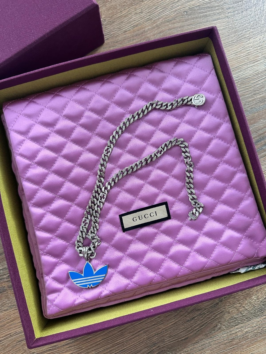 Caute zena posuva veci, ktore musela mat a tam aj ich pouzivanie skoncilo Vsetko uplne nove, kupovane v origo butiku. 1. Originálny náhrdelník z limitovanej kolekcie Gucci x Adidas s ikonickým príveskom trefoil v modrej farbe s logom Gucci. Reťaz je v striebornej farbe (typ Cuban chain). Náhrdelník je úplne nový, dodávaný v originálnom balení (krabica + vankúšik), vhodný aj ako darček alebo zberateľský kúsok. Ide o full set, prakticky nezohnatelny v stave a sete. PC: 1 200 EUR, moja cena: 500 EUR / 12 215 CZK s poistenym kurierom v cene. 2. Jacquemus Le Bob Gadjo Hat (Daisy print) - „Le Bob“ je názov, ktorý Jacquemus používa pre svoje bucket klobúky a „Gadjo“ býva verzia so širším okrajom a šnúrkou. Klobúk je úplne nový, kupovaný v St. Tropez, nikdy nenosený, stále s visačkou. Parádna kvalita a taktiež vhodný ako dar. Dust bag, nastavitelna snurka pod bradou. Povodná cena: 120 EUR, moja cena: 75 EUR / 1 830 CZK s poistenou packetou v cene.