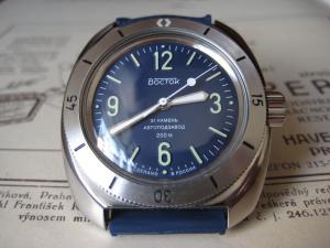 Vostok ???-30 Limitka 300ks hodinek vzniklá na watch.ru. Limitka, bohužel, rozebrána a čekatelů je přes stovku Líbí se mi to, hlavně na tom strapu. Jediné s čím trošku bojuji jsou ty zlaté ručky a indexy.