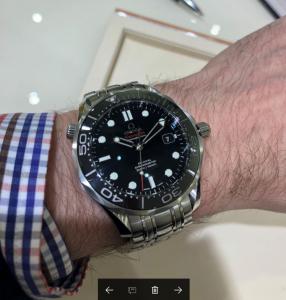 Stavil jsem se dnes v podvecer cestou z Prace u Dusaku na Arkadach a zkusil si model 41mm a myslim, ze je to sice na hrane, ale da se to...byl jsem prekvapen, jak prijemne na te me kostnate ruce sedelo jejich pouzdro. Jeste jsem si je porovnal s Aquaracerama od TAG HEUER (ty jsou samy o sobe pekne, ale jen dokud se nedaji vedle tech Omeg, proti nim mi prijdou mene decentni, ale zase skoro polovicni cena) a Coltama od Breitlingu...oboje na ruce taky sedely. Ale Bondovky jsou proste Bondovky :-) Povedlo se mi udelat par fotek ruzne kvality, ale nahodim az zitra v praci, tedka mi nejak zlobi mobil. V obchode velmi sympaticky a ochotny pan, podle vizitky asi vedouci, jmeno jsem zapomnel a vizitku mam nekde v penezence. Evidentne se ale vyzna. Akorat mi teda prijde silene davat nejakych 4k za originalni NATO strap od Omegy, kdyz se daji koupit aftermarkety za par stovek...ale on je zjevne purista a dival se divne i na to, ze bych je chtel dat na kozeny remen :-) Z prodejni ceny na dotaz nabidl slevu 7% pri platbe v cashi. Nicmene porad ty Omegy vychazeji na nejakych 85k...coz mi prijde jako vzhledem k cena novych na Chrono24 jako fakt prilis. Kdyz budu chtit nove, udelam si na otocku vylet do Berlina, kde jsou u AD o cca 20k lacinejsi. A predpokladam, ze zaruka Omega je mezinarodni, ze?