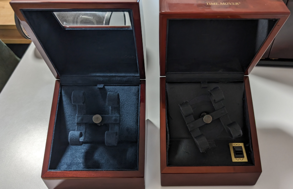 Predám nasledovné windery 1. Designhüte - na 2ks hodiniek - 40€ 2. Elma motion (buben&zorweg) time mover - jeden nový nepoužitý, druhý na náhradné diely (opotrebovaný, a pri poslednej výmen betérií odtrhnutý prívodný drôt k vypínaču, kutil opraví a bude fungovať) - sada 120€ 3 Elma motion corona na 4ks - https://www.watch-tools.de/watch-winder/elma-motion/elmamotion-corona-4-burl-watch-winder-23416.php úplne nové nové holdre, miestami obuchaná - 400€ Ďakujem za priestor
