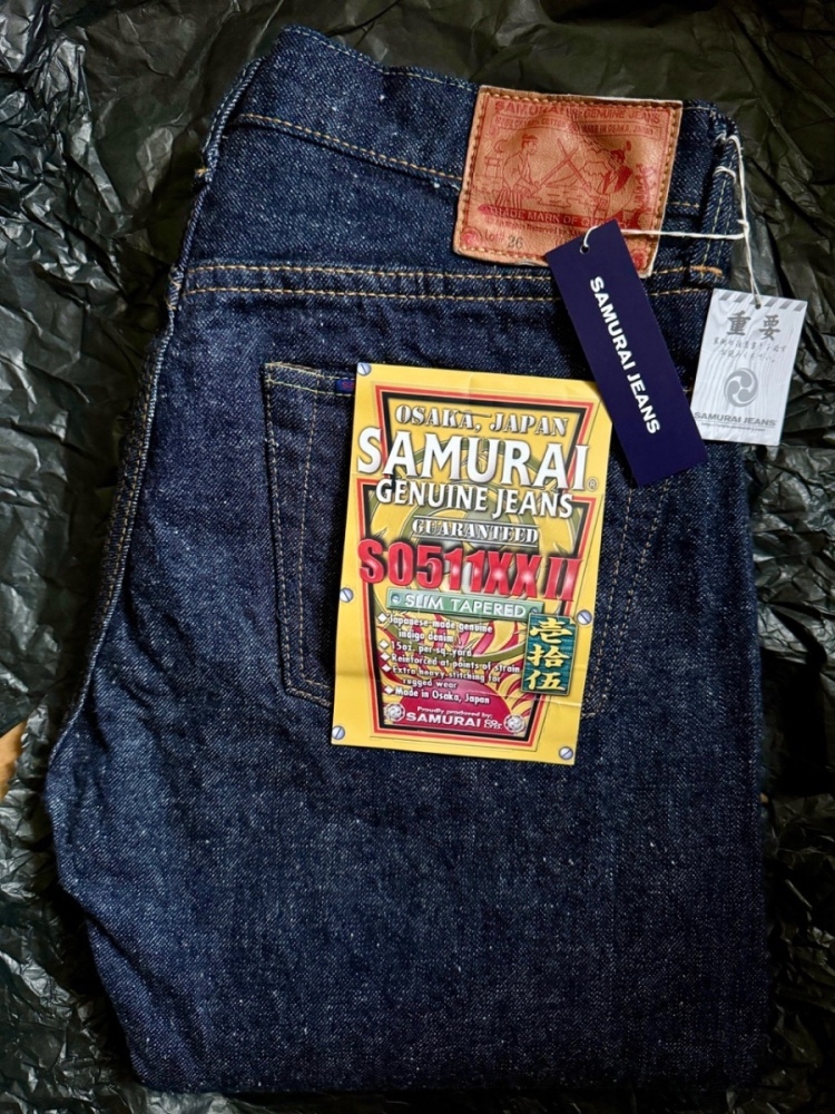 Nový přírustek a první zkušenost se Samurai Jeans. Okamžitá zamilovanost. Přesně to, co jsem hledal - skvělý střih, perfektní a příjemný slubby materiál (signature 15oz. Otokogi - gramáž a tuhost tak akorát) a ty různé detaily jsou prostě naprostá nádhera!
