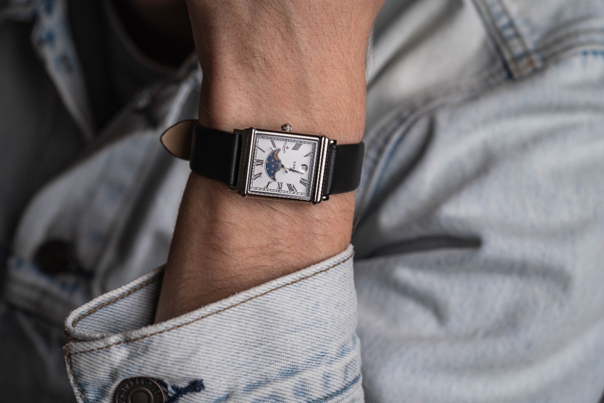 Prodám řádně vyhypované (a aktuálně i zcela vyprodané) hranaté Noah x Timex Moon Phase Watch v klasické oceli na původním hnědém koženém řemínku (ale přihodím i černý Hirsch Toronto L na fotkách, který jim podle mě sedne mnohem víc). 50m voděodolnost, quartz s ukazatelem měsíční fáze, vel. 37 x 25 mm...