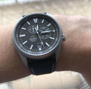 Ahoj, hledali jsme pro bráchu první automaty, něco univerzálního trochu směrem do field watch, něco co půjde nosit k džínám i ke košili. A relativně malém budgetu 3500 Kč. K čínské produkci úplně nemáme tu správnou důvěru, takže jsme zvolili japonsko. Samozřejmě mě jako první napadly legendární Seiko 5 SNK809 (a zarazila nízká cena 67 USD na Creationwatches), ale ty už jsou dost "vojenské a málo univerzální". Potom co jsme neúspěně prošli komplet produkci Seiko, zkusili jsme Orient. A tady už brácha objevil něco vyhovujícího a to Orient Defender. Na Creationwatches byly bohužel vyprodané. Ani na dotaz nevěděli, kdy budou, tak jsme museli jinam. Zvolil jsem americký Longinslandwatch.com, protože byl jeden z mála prověřených, co je měl skladem. Zajímavé je, že tam byly dokonce levnější než na Creationwatches. Černý cifr na Creationwatches za 139 USD a tady byl stardardně za 129 USD. Hnědý byl navíc ve slevě za 119 USD. Plus mají slevu 5% na první nákup. Takže za 113 USD + 12 USD za Shipito dopravu do ČR (protáhnuto bez DPH a cla), myslím skvělý kup. Dorazily přibližně za 3 týdny v pěkném boxu. Teď k hodinkám samotným. Dobře sedí na ruce, hlavně řemen je příjemný a hezky ohebný, přijde mi ale dost tenký. Nožičky by mohly být malinko více zaoblené, aby lépe kopírovaly tvar ruky. Ale jinak v téhle cenové kategorii naprosto super. Mají šroubovací korunku. Po cca 14 dnech dělají asi 9 sec do plusu denně. Specifikaci si dovolím z ofiko stránek: Movement: ORIENT Cal. 46B40 Automatic Movement Power Reserve: Approximately 40 hours Crystal: Mineral Water Resistance: 100m Case Material: Stainless Steel Case Diameter: 42mm without crown Case Thickness: 12mm Dial Color: Grey Band Material: Leather (Black) Lug Width: 22mm Zásadní objev na závěr! Už vím, co mi to logo celou dobu připomíná...