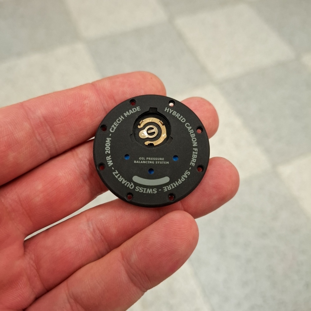 Malé technické okénko Dynko na PROVOKE HYDRO TRITIUM je opravdu náročné na výrobu, protože v sobě má hned dvě klíčové věci. Kompenzátor roztažnosti oleje (to jsou ty modré tečky) – jeho nalepení je vážně věda kvůli použitým materiálům a ještě musí spoj odolat oleji. A baterie umístěná mimo vnitřek hodinek. To znamená udělat zcela nové kontakty, vymyslet, jak převést napětí do strojku, jak kontakty svařit a před tím je ještě musím pozlatit. A i to je věda. Vzhledem k použitému materiálu nejde kontakty rovnou pozlatit. Nejdříve je třeba nanést podkladovou vrstvu niklu. Dnes mám radost protože se mi povedlo rozjet nejen lepeni ale i zlacení a svařování kontaktů.
