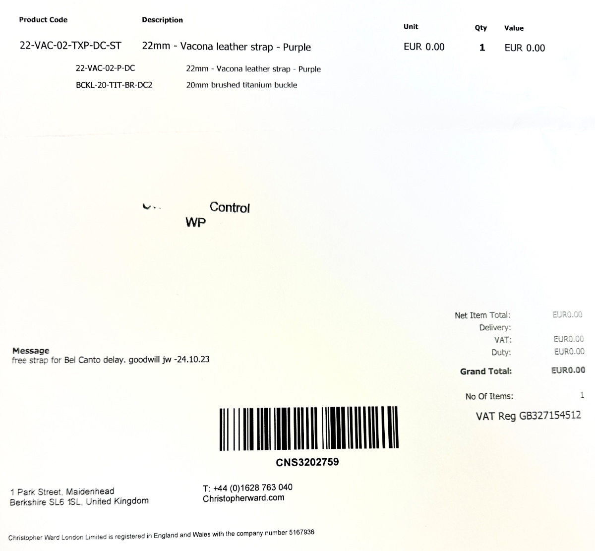 Když už jsme u těch Viol, psal jsem Wardům dotaz, zda se neposune termín dodání alespoň o trochu, když už mají přednost všechny ty bespoke edice. Termín neposunou, ale učinili moc hezké gesto a poslali mi zdarma fialový kožený řemen s titanovou sponou k očekávaným hodinkám. Všiměte si textu Message od Jamese Wilsona. Takže tímto i zde Wardům dějuji, potěšilo mě to Takže, kdo jste v Depositu, zkuste se, možná rovněž i trochu rýpavě, pozeptat na termín a třebas Vám to také vyjde. Znáte to, líná holé neštěstí -