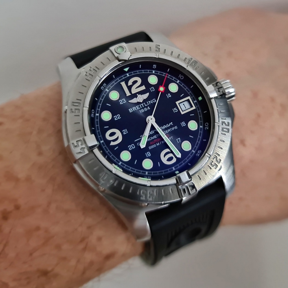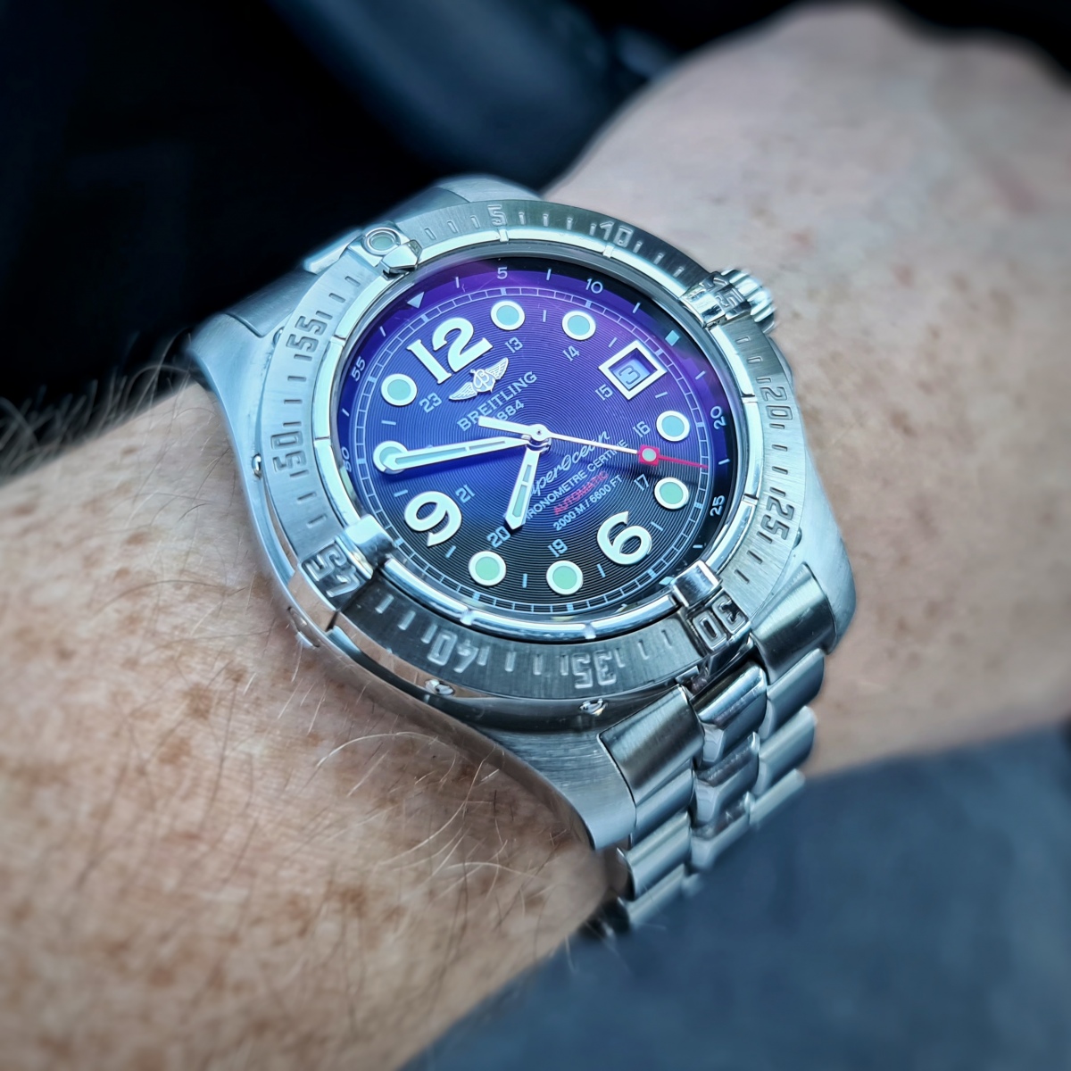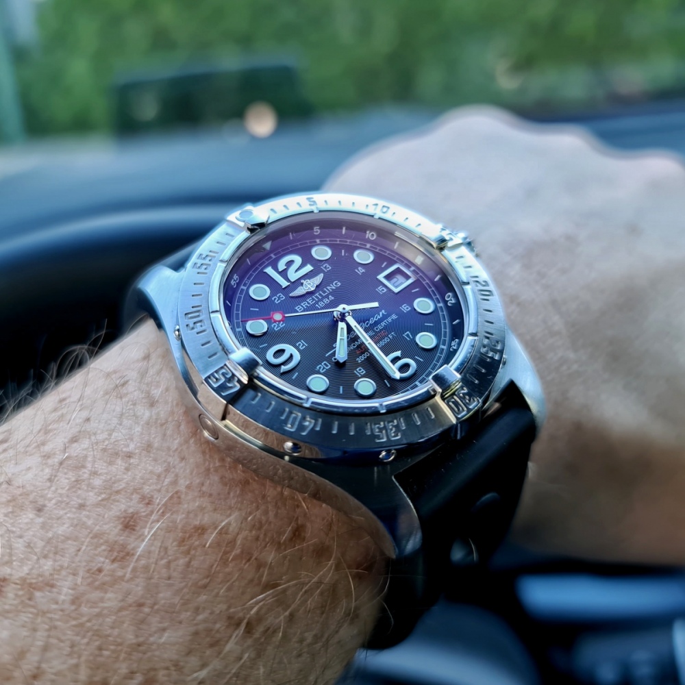 Po letech na ruce opět Breitling tentokrát BigB Steelfish. Měl jsem je v hledáčku delší dobu a konečně to klaplo. Nemůžu se na ně vynadívat. V tom cifru se odehrává tolik světelných příběhu, které vyniknout díky úžasnému antireflexu.