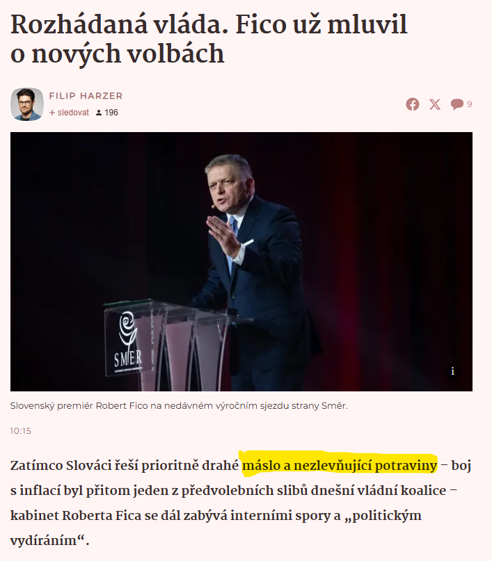 Musím to někam napsat... dopr... Tuhle na mě vykoukl nějaký rozhovor se Schillerovou jak je naše vláda na prd, že nezastropovala ceny energií jako HU/SK a kvůli tomu zdražilo v ČR máslo... to samé kňourá Okamura a tleskají...