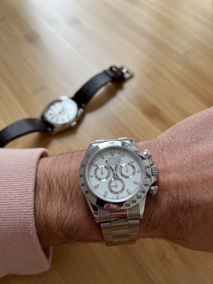 Zdravim. Nevim jestli je toto uplne to spravne vlanko, ale chtel jsem se podelit o zkusenost se servisem mych Daytona. Koupil jsem je v zime od mistniho clena a jelikoz hodinky maji presne 10 let, rozhodl jsem se je poslat na velky servis. Servis jsem resil u Bechyneho v Brne. Celkove to trvalo asi 5 tydnu. Kdyz jsem tam hodinky nechaval, byl jsem informovan ze by se cena mela pohybovat okolo 25k a ze po tom, co budou hodinky rozdelany me budou jeste kontaktovat v pripade, ze by bylo potreba menit nejake dily. Po cca 14 dnech se mi opravdu nekdo ozval. Na 13. hodine byl maly skrabanec na safiru, tak jsem se jeste ptal na moznosti vymeny. Cena noveho skla byla cca 2.5k, coz pro me bylo prijemnym prekvapenim a s vymenou jsem tedy souhlasil. Sakum prask to bylo za 27402 Kc s tim, ze si mi vratily hodinky, ktere vypadaji jako nove. Celkove prijemna zkusenost a Hodinarstvi Bechyne muzu jedine doporucit.