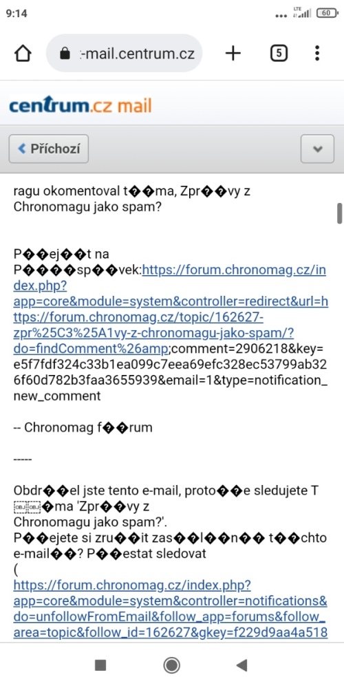 Není problém to označit jako nespam. Ale celý ten obsah je v řiti... Viz příloha. Možná je chyba u mě, ale třeba i někde jinde. Nevím, já se v tom moc nevyznám.