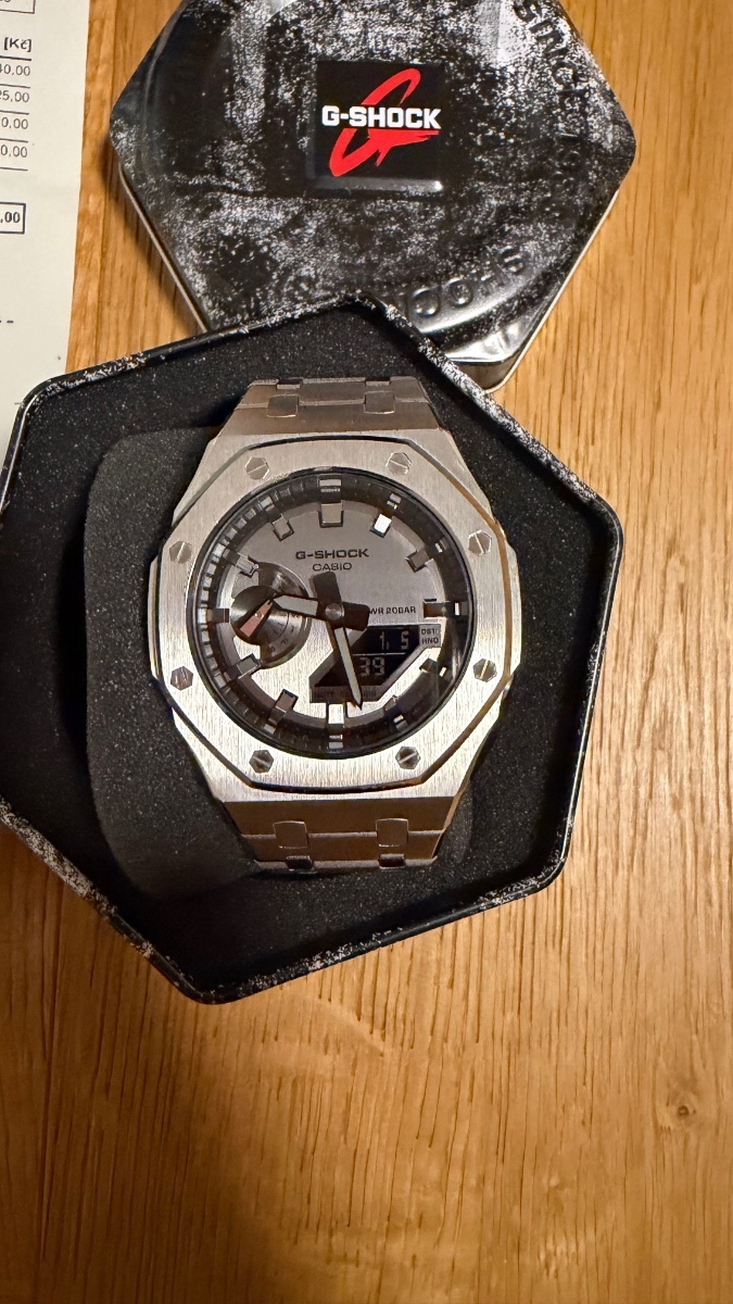 Prodám G-shocky GM-2100-1AER, zmódované do Royal Oak, zakoupené před 2 lety u Timestore, poté dokoupen mód. Nezničené, nošené párkrát. Cena: 4.999,- Kč
