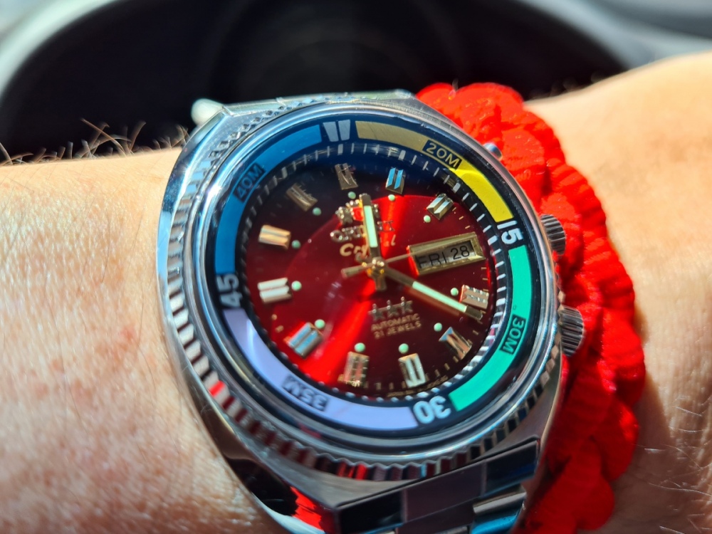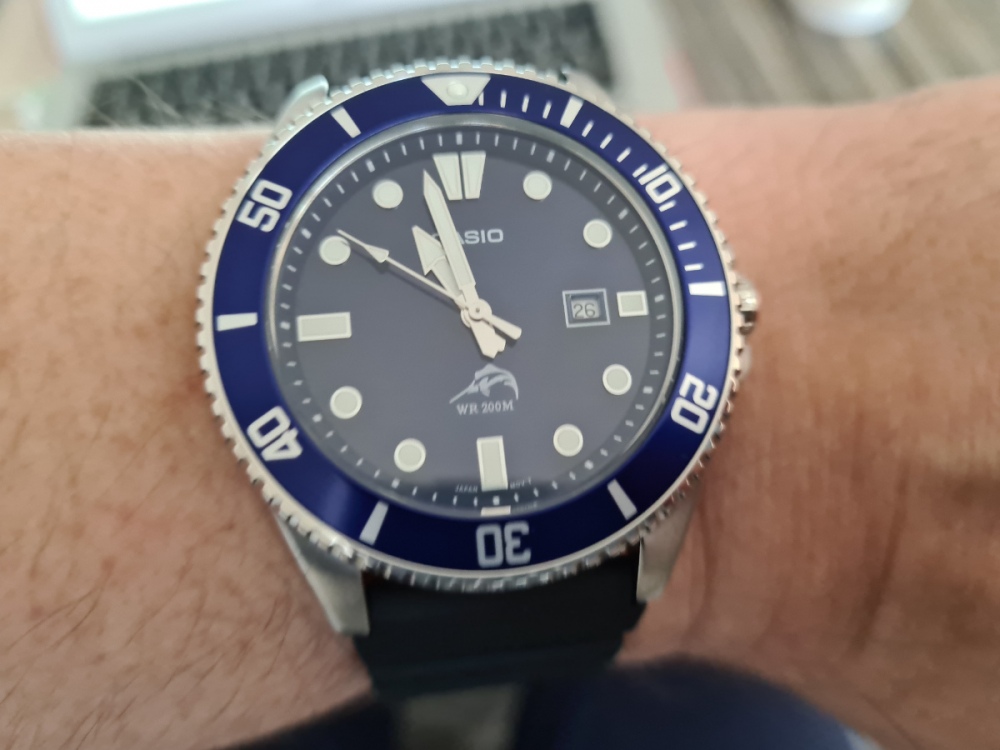 Zdravím všetkých chronomaniakov. Som tu nový a toto je môj vôbec prvý príspevok a dole je môj najnovší prírastok, určený predovšetkým na ryby. Som muškár a potrebujem nenáročné a vodotesné hodinky. Pred pol hodinou ho priniesla poštárka, robí mi veľkú radosť. A ďakujem za toto fórum, veľmi rád sem chodím a som rád že nie som v svojom postihnutí osamotený, dlho som si totiž myslel že som
