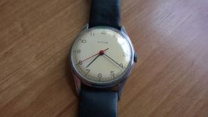 Zdravím vespolek, z hloubi jednoho zaprášeného stolu v jednom bytě jednoho rodinného známého jsem vytáhl hodinky, jejichž neumělé fotky přikládám. K hodinkám nemám žádný doklad a současně už není nikdo, koho bych se mohl na jejich původ zeptat. Neuměl by hodinky někdo místní blíže určit (tedy kromě značky Titus, kterou jsem si na cifu samozřejmě přečetl taky a o který jsem toho popravdě moc nedohledal)? Hodinky jsou funkční, mají ruční nátah a průměr bez korunky sotva 33 mm.