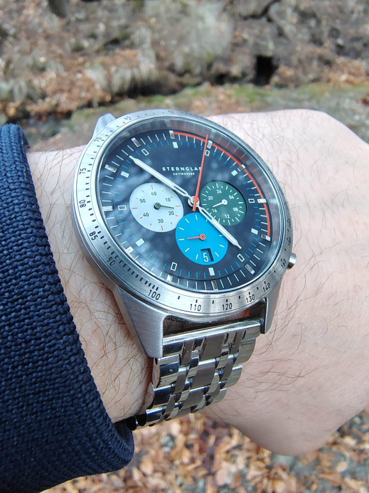 Podle dizajnera, který pro Sternglas tyto tachymetry kreslil, je ciferník tvořen s 26 artiklů. Já je nikdy nenapočítal. To se dá chápat, do školy sem moc nechodil.