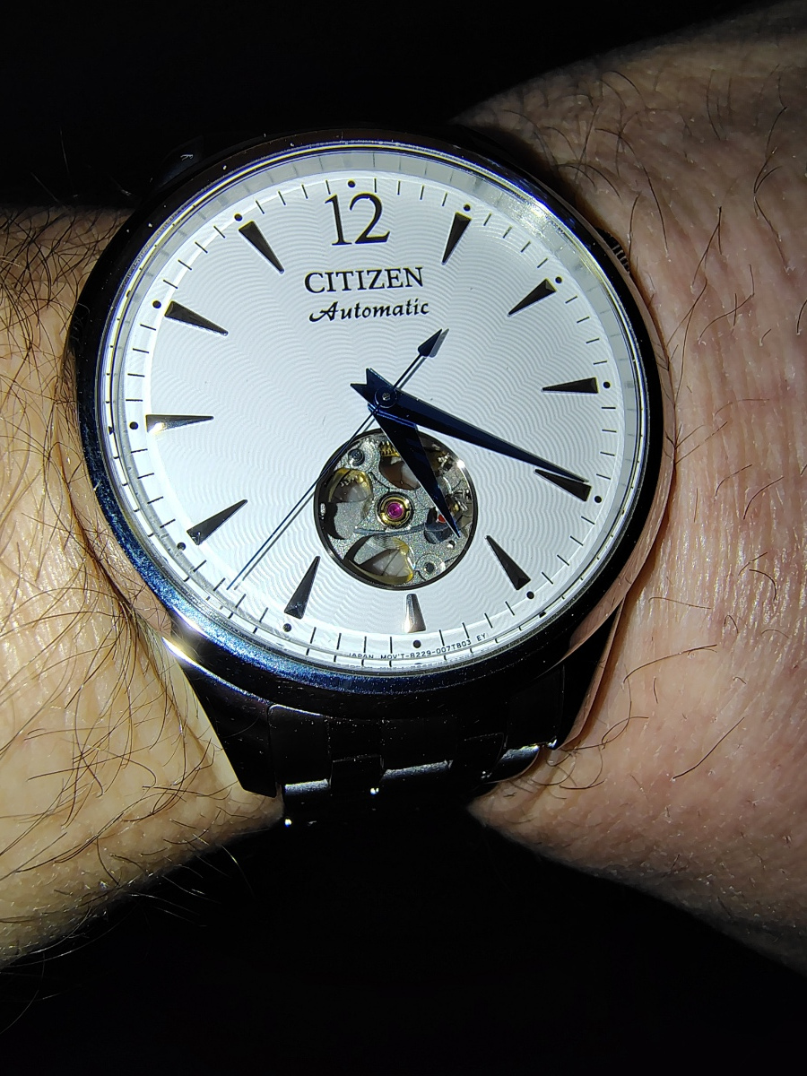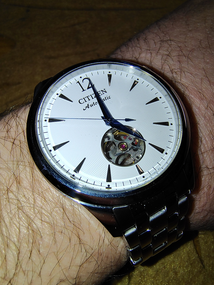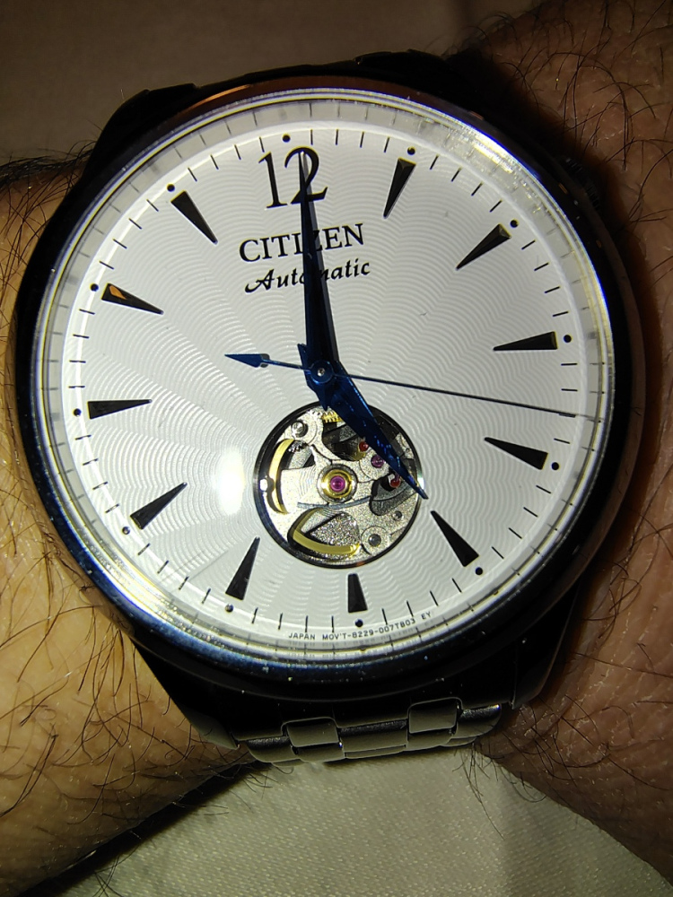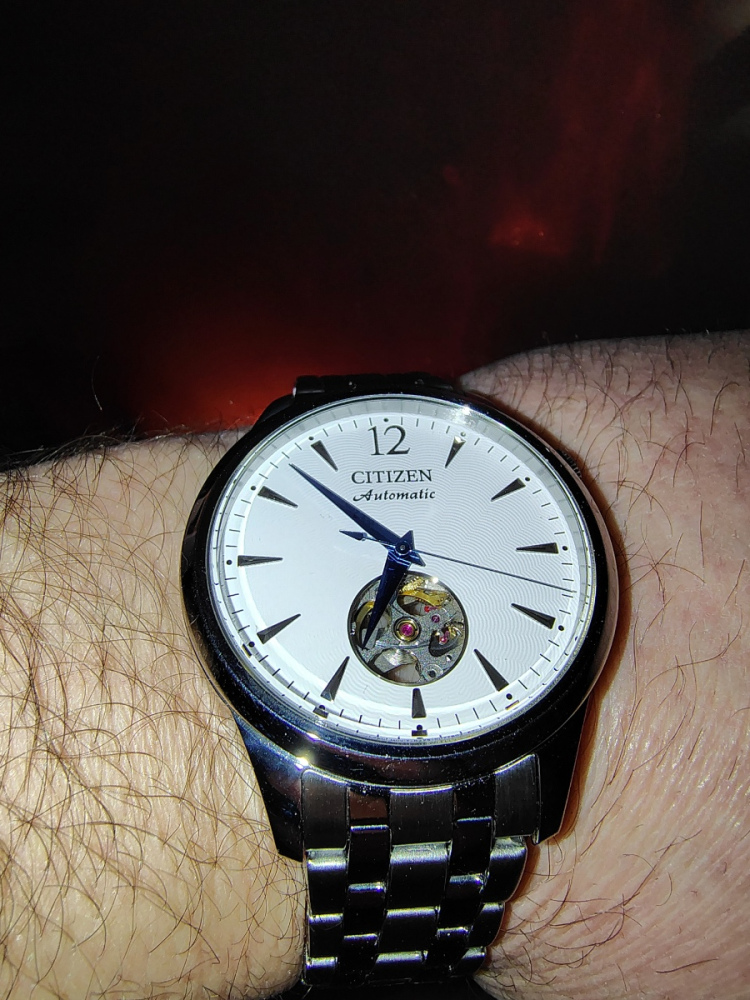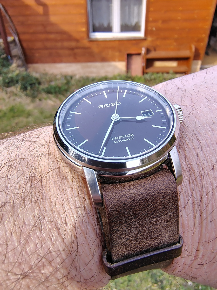 Ale jsou tam lépe vidět ručky, než u mých bílých. Tak je někdy odezírání horší. Ale ten zrnitý ciferník stojí za to.