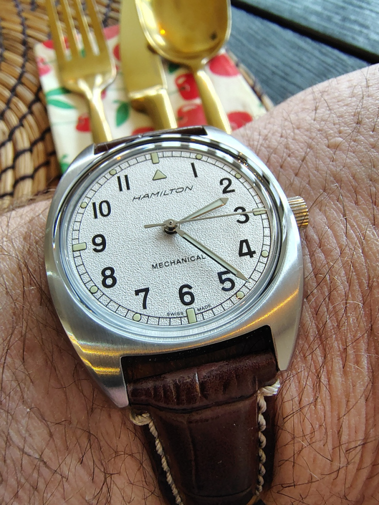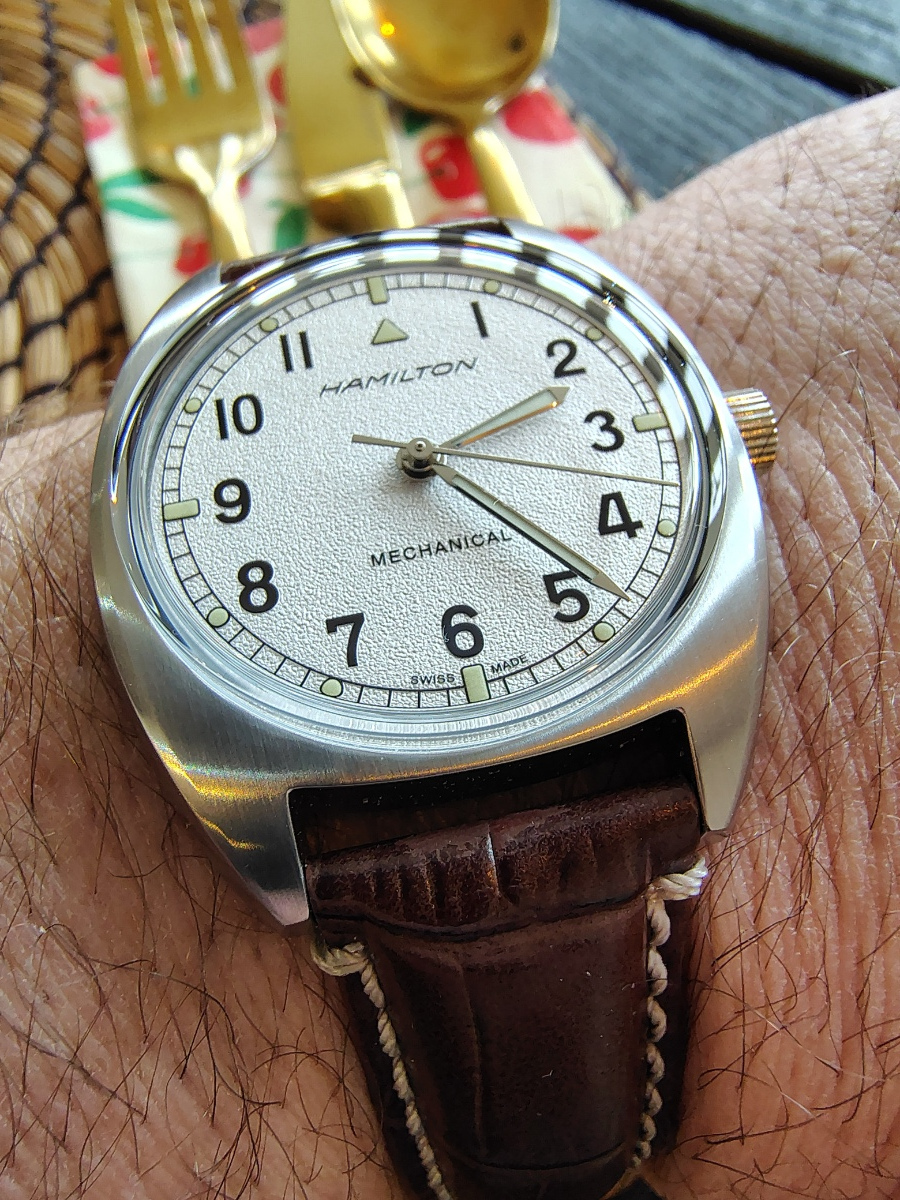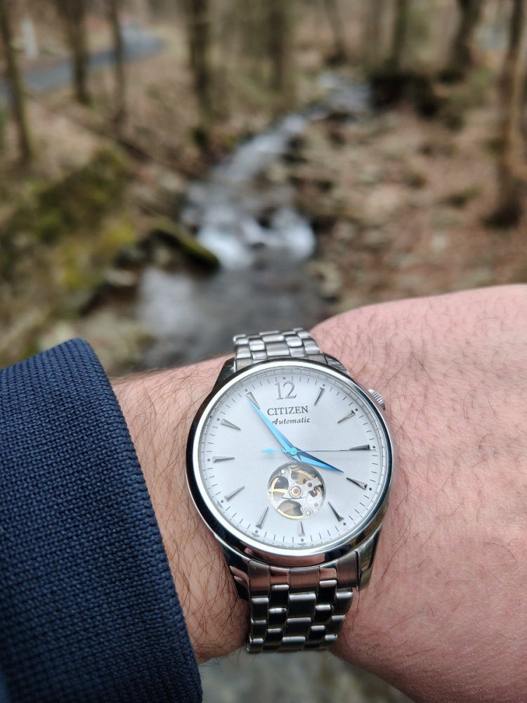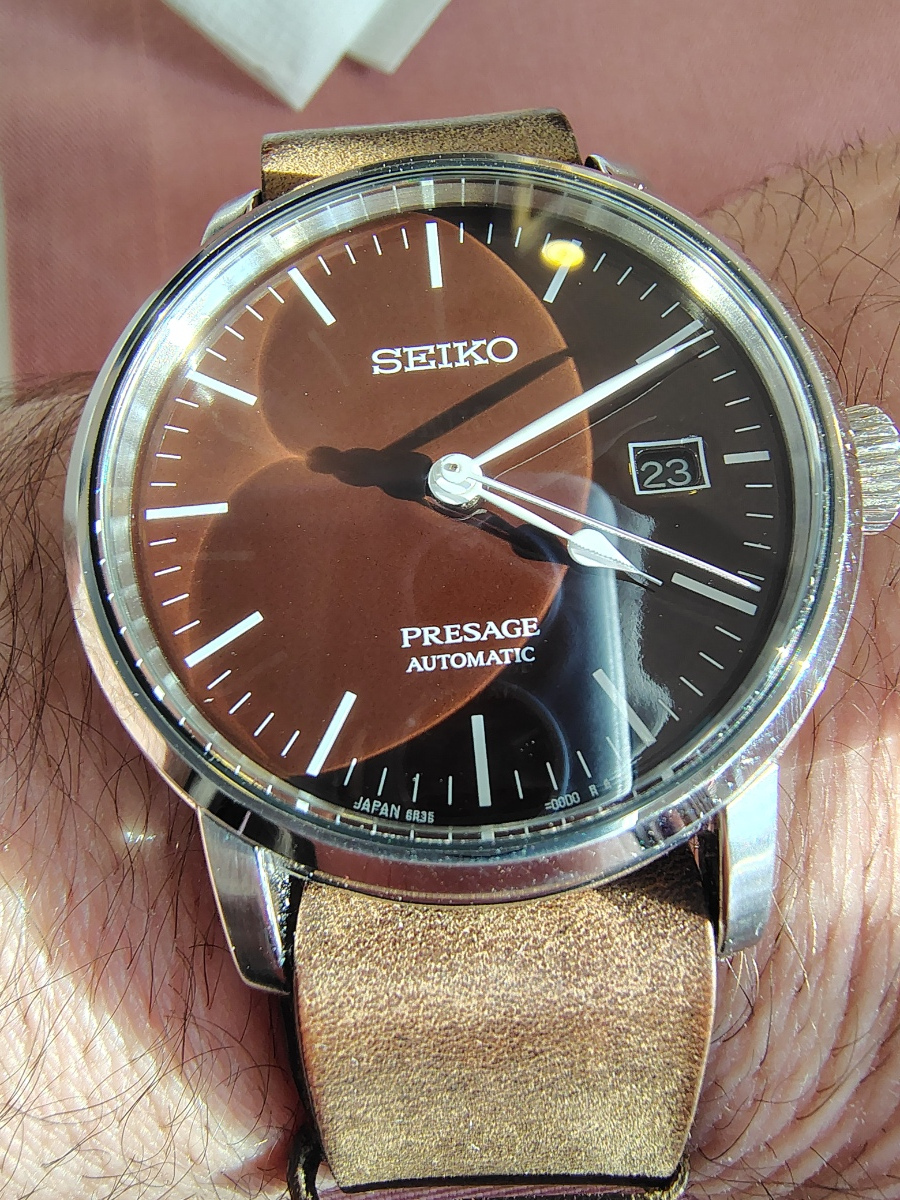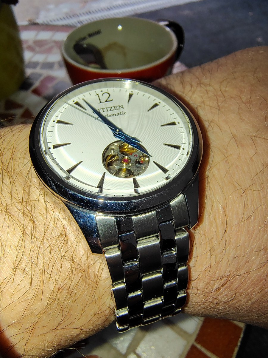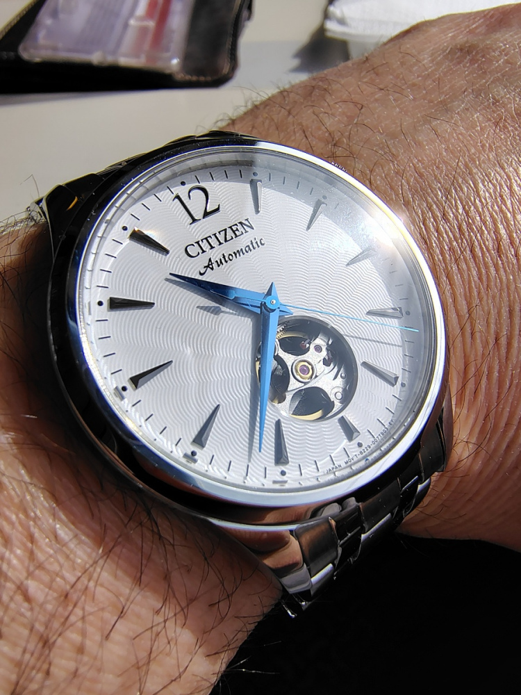 Ale jsou tam lépe vidět ručky, než u mých bílých. Tak je někdy odezírání horší. Ale ten zrnitý ciferník stojí za to.