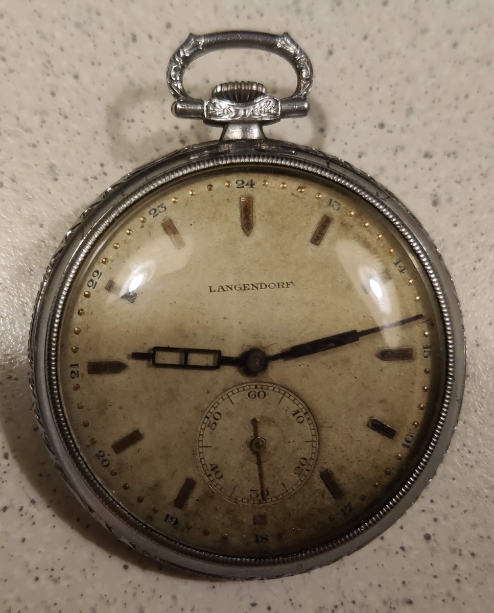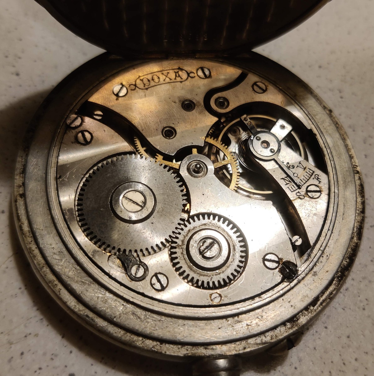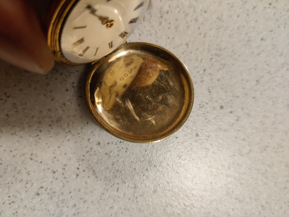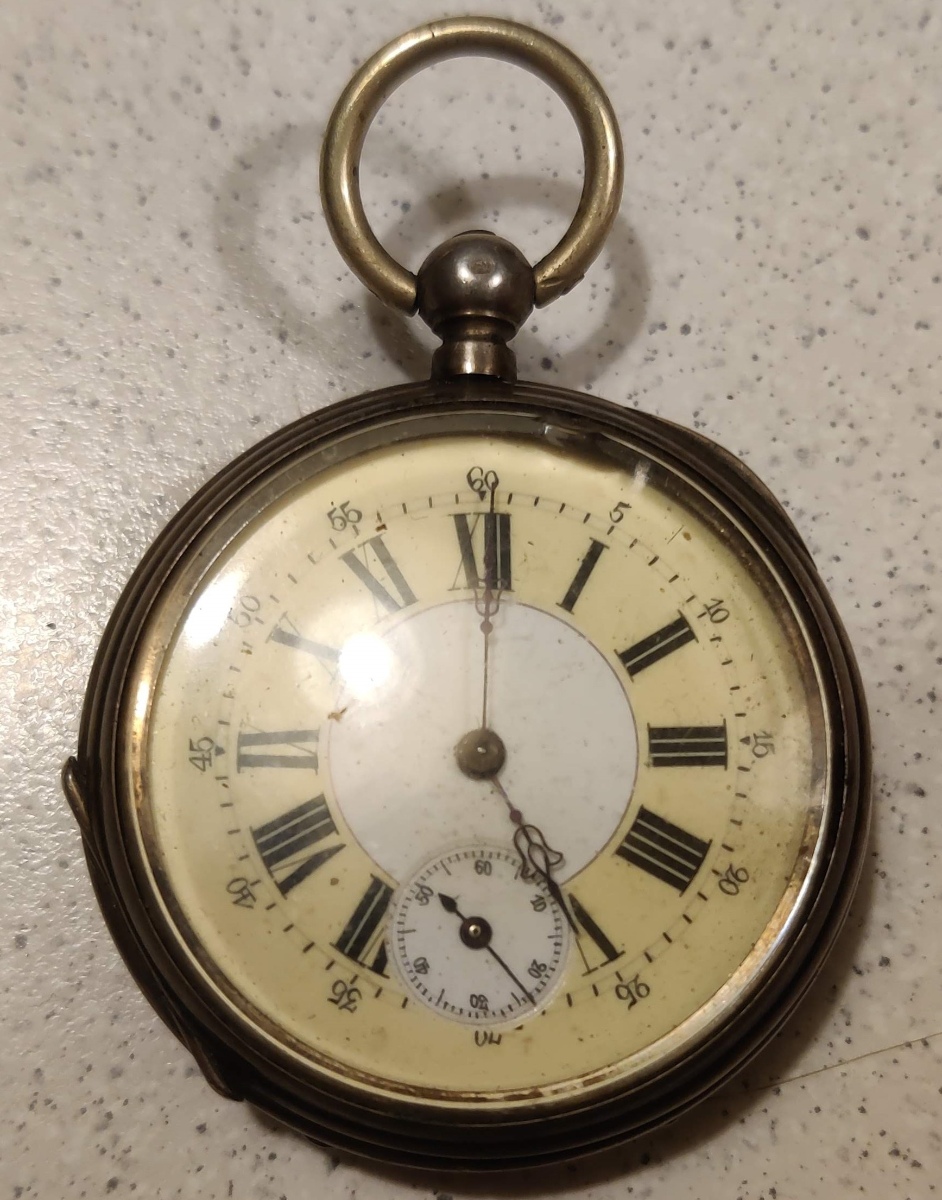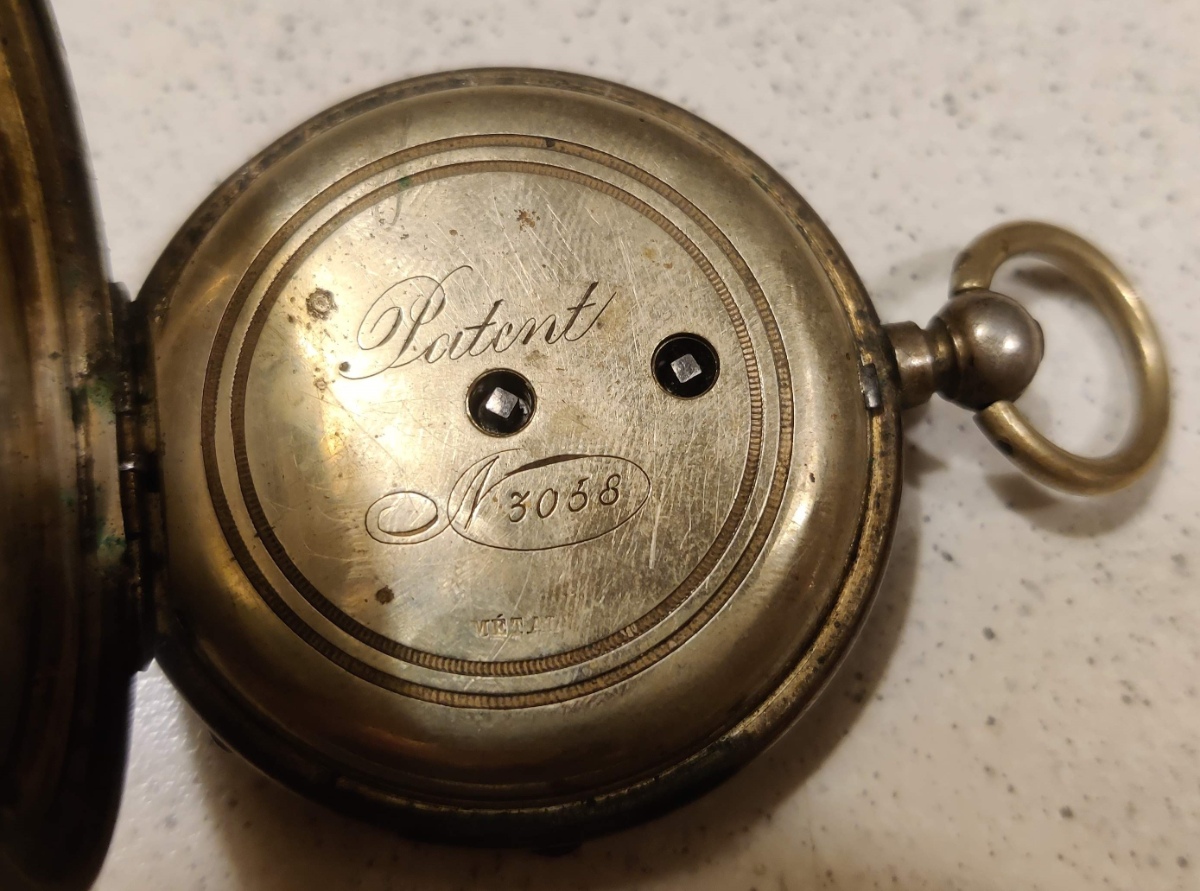 4) Patent Remontoir - funkční jen v některé poloze, chybí sklíčko.Původně jsem myslel, že chybí i ručička, ale našel jsem shodné hodinky a také mají jen hodinovou ručičku.. teoreticky shoda náhod, ale to by mi přišla dost velká náhoda. Pokud by se povedlo rozchodit úplně a sehnat sklíčko, byl bych rád. Ze stránky níže se dá i něco dočíst. Je zajímavé, že mají velmi podobný ciferník jako ty předchozí. Asi tedy něco z toho nebude originál, nebo prostě poskládané z běžných dílů.