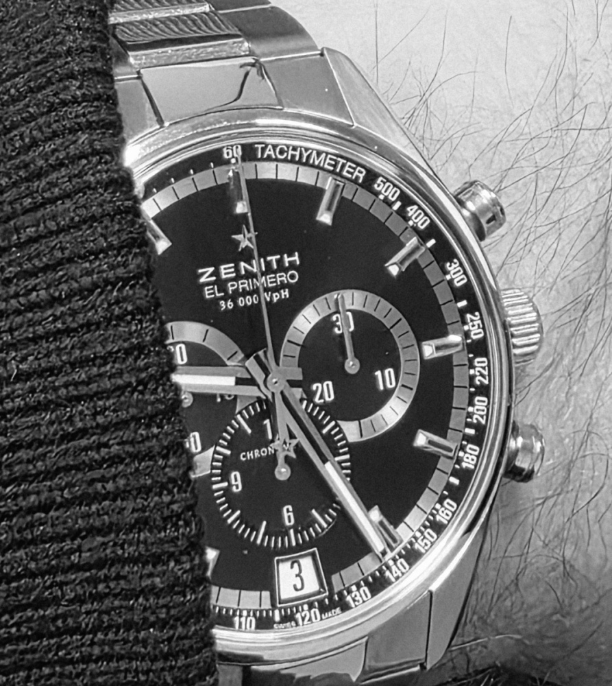 Defy Skyline 41cm, uvnitř upravené El Primero bez chrona, ale s bláznivě lítajici vteřinovkou (kolo za 10 vteřin)