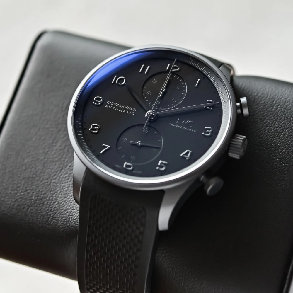IWC rozhodla dát svému symbolickému chronografu - IWC Portugieser Chronograph , který byl představen v roce 1998 celočerné provedení a pouzdro vyrobené z materiálu Ceratanium, což je u těchto hodinek novinka - IWC Portugieser Chronograph Ceratanium. Ceratanium je vyrobeno ze speciální titanové slitiny, která se vypaluje při vysokých teplotách v peci. 41mm, 30m WR, calibre 69355 s 46h rezervou limitka 1500 ks. https://monochrome-watches.com/iwc-portugieser-chronograph-ceratanium-all-black-iw371631-limited-edition-price-review/