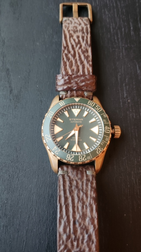 Nabízím limitovanou edici Etherna KonTiki Bronze s in-house automatickým strojkem. Nošené minimálně – po 5 letech stále vypadají jako nové. Pouze pár drobných vlasových škrábanců na zadní straně. Stav 9,7/10. Skvělá volba pro milovníky poctivých mechanik, bronzu a čistého designu bez datumovky. Cena: 44.000 Kč Stáří: 5 let Pouzdro: bronzové s unikátní patinou Průměr pouzdra: 44mm Tloušťka: 14 mm Lug-to-lug: 51 mm Šířka řemínku: 22 mm Strojek: in-house automatický kalibr Sklo: safírové Voděodolnost: 200 m Řemínek: premiový řemínek ze žraločí kůže, velmi pohodlný a stylový Stav: téměř jako nové, jen pár jemných škrábanců na zadní straně, jinak perfektní Stáří: přibližně 5 let, minimální nošení