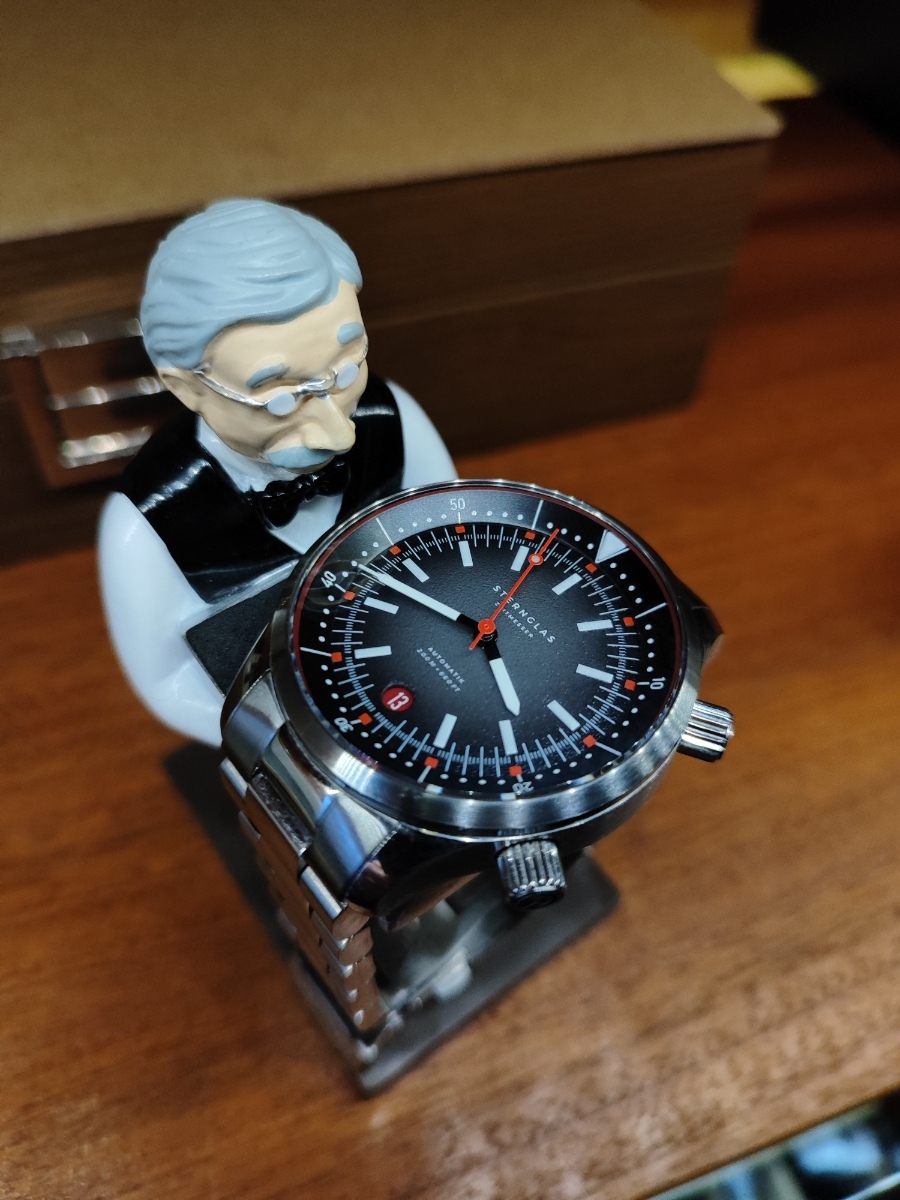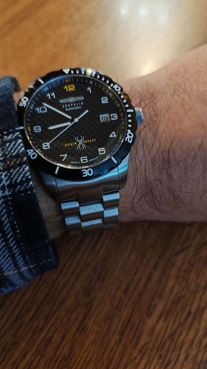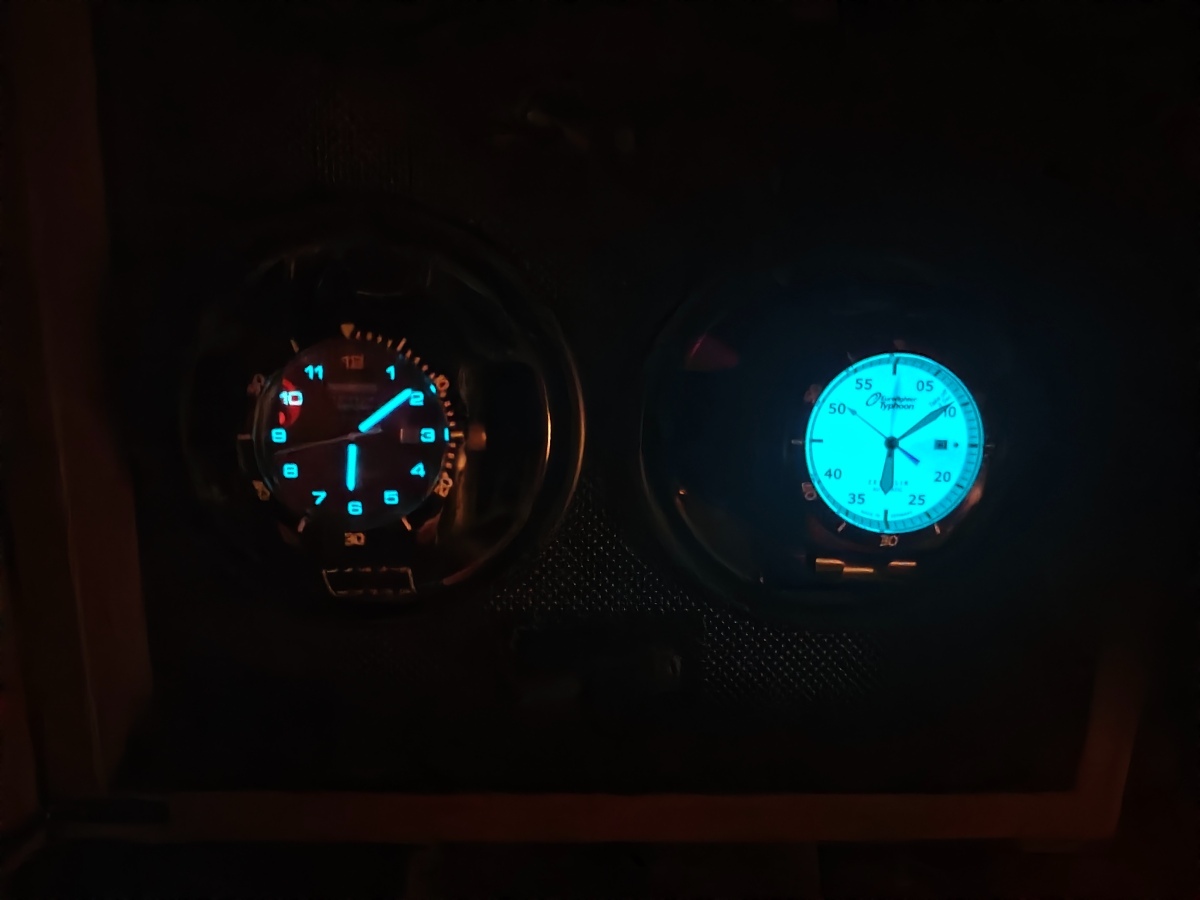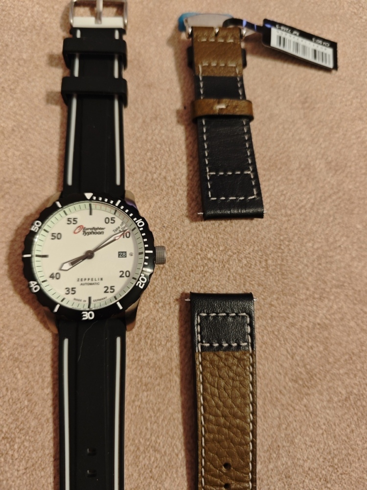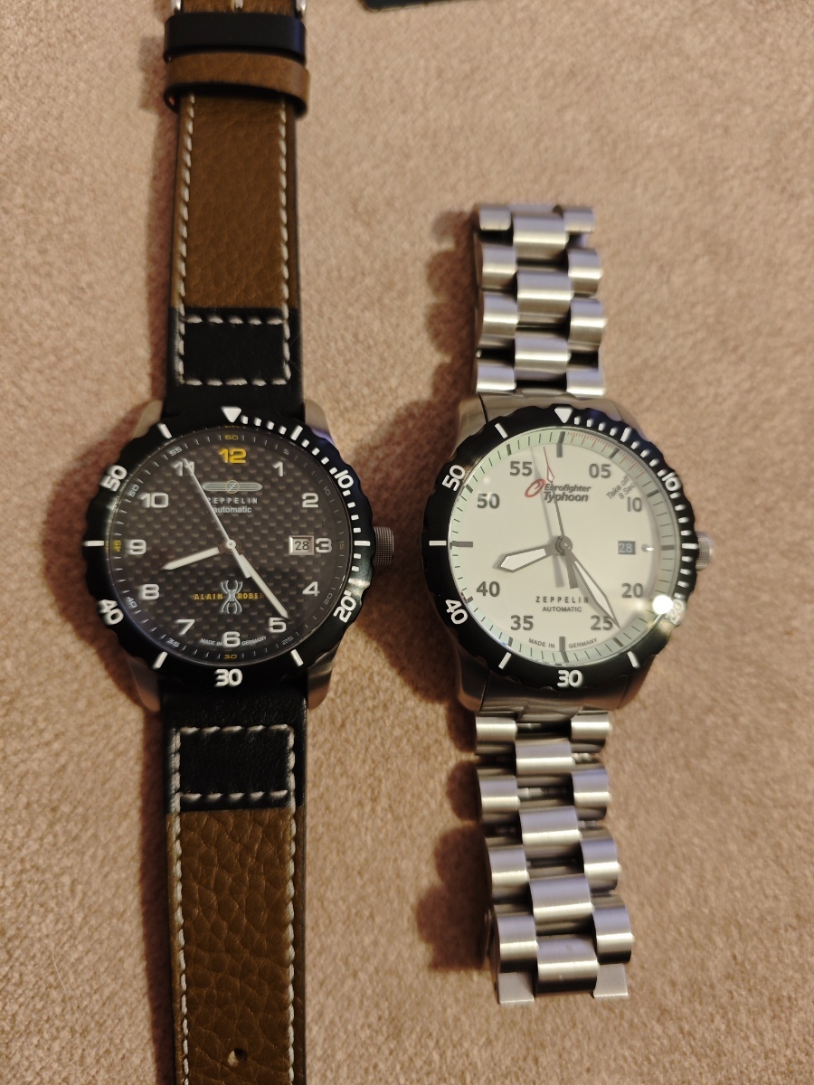 Svým nejčastěji nošeným automatům Zeppelin Night Cruise s karbonovým ciferníkem jsem pořídil bratříčka Eurofighter s full lumi ciferníkem. Stejné tělo i safírové sklo, stejný strojek miyota 9015. Doma hned mezi nimi proběhla rošáda řemenu za tah, tak jim to podle mě sluší o něco víc.