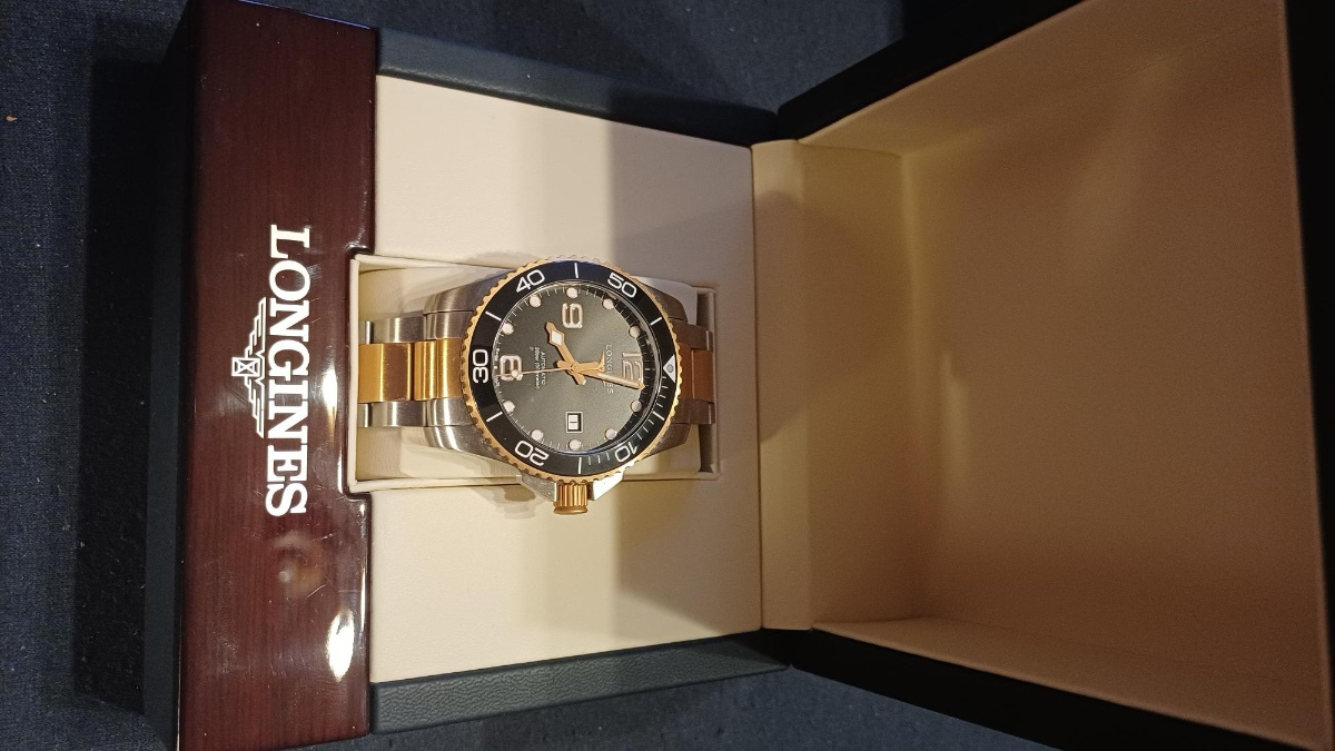Prodám zánovní hodinky Longines Hydroconques 43 mm Koupeny v listopadu 2025 v hodinářství Bechyně 5 let záruka Kompletní balení Přesnost cca +1.3 s/den Nošené, kancldiving na sponě jinak čisté Osobní předání Praha cena 35000 Kč