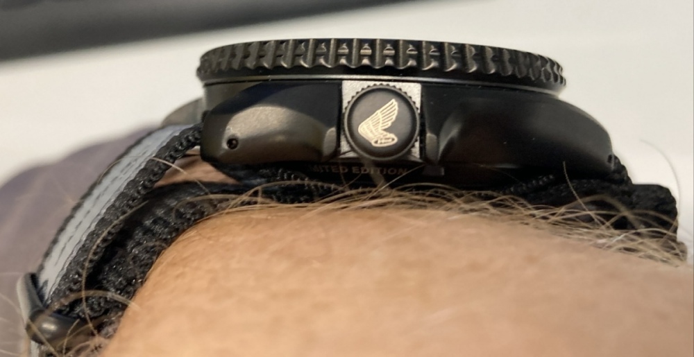 Pokukoval jsem po limitkách Seiko v kolaboraci s Hondou na Super Cub, když jeden prodejce na ně dal slevu 30% tak jsem po nich skočil. Super Cub je super stylový a zábavný přemisťovadlo a ladicí hodinky mi přišli fajn. Přikládám 2 moje amatérské fotky. Styl hodinek na první pohled (když opomenu řemínek) nijak nekřičí, jsem limitka s Hondou, a přijdou mi decentní. Detaily na na číselníku a korunce jsou moc hezky udělané a zapadají do stylu hodinek. Co trochu zamrzí, že na modrých hodinkách si Seiko ohlídalo tvar blinkrů pro 11 a 1 hodinu a jsou oválné a na šedé verzi dali kulaté (Upřímně modrý Super Cub je hezčí, ale hodinky se mi líbí víc šedý, navíc zase tvar světla 12 hodina je správně). Dýnko je křiklavější, ale není vidět. Na všech propagačních fotkách je dýnko s logem Hondy a Super Cub hezky svisle, moje je šejdrem, ale jak říkám, není vidět a řešit to budu max při nějakém servisu. Hodinky přišli v krásné krabičce, nasazené na červeném koženkovém polštářku stejné barvy jako je na Super Cubu sedlo.