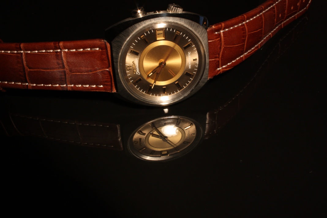 jinak jeste technicke info: Seamaster - Memomatic Gents' leather strap Reference ST 166.0072 International collection 1969 Movement * Type: Automatic (mechanical) * Caliber number: 980 * Created in 1969 19 jewels Central sweep-second hand Functions Date, Alarm Case Stainless steel Case back * Screw-in * Full metal Dial Metal, with luminous hour markers and luminous metal hands. Crystal Armoured hesalite Bracelet Leather Water resistance 60 meters This watch may have existed with different dials. More product information Case : 14,4 x 40 x 38 mm For leather straps of 22 mm lug-size International Collection : 1969 -1979 Swiss retail price (1975) : CHF 600.- Also available in 14K gold-plated (20 mic.) with SS case back under ref. MD 166.0072 (CHF 695.-). Also available with SS bracelet of ref. 1170/618 or gold-platee bracelet of ref. 1182/118. JLM