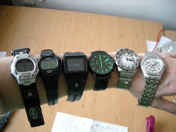 Cesta k nim byla ale dlouhá Jako mladej sporťák jsem nosil samozřejmě digitálky, na fotkách můžete vidět Timexy Ironman 30 lap, se kterýma jsem byl vždycky maximálně spokojený, dokonce jsem je postupně koupil čtvery, jedny ztratil, jedny daroval a tak mi zbyly dvoje:) Potom mě padly do oka Nixon Lodown, které mají funkce pro surfaře ohledně vln, přílivu atd. - a to se nesurfařovi v Česku přeci hodí k nim jsem pořídil první ručičkové quartzky od Wengeru, líbí se mi leštěný ciferník a za dva roky častého nošení bez jediného problému a stále vypadají jako nové. Minulý rok jsem dostal k narozeninám Wenger Commando SRC, pvd povlak a gumový řemen jsou velmi příjemné na nošení a odolné, ale to se bohužel o strojku říct nedá, po pár ťuknutích se mi posunula minutová ručička na stopkách o jednotku doprava. Až tady na fóru jsem se dozvěděl, o nespolehlivosti hodinek Wenger, takže teď za tím nehledám žádnou záhadu:)